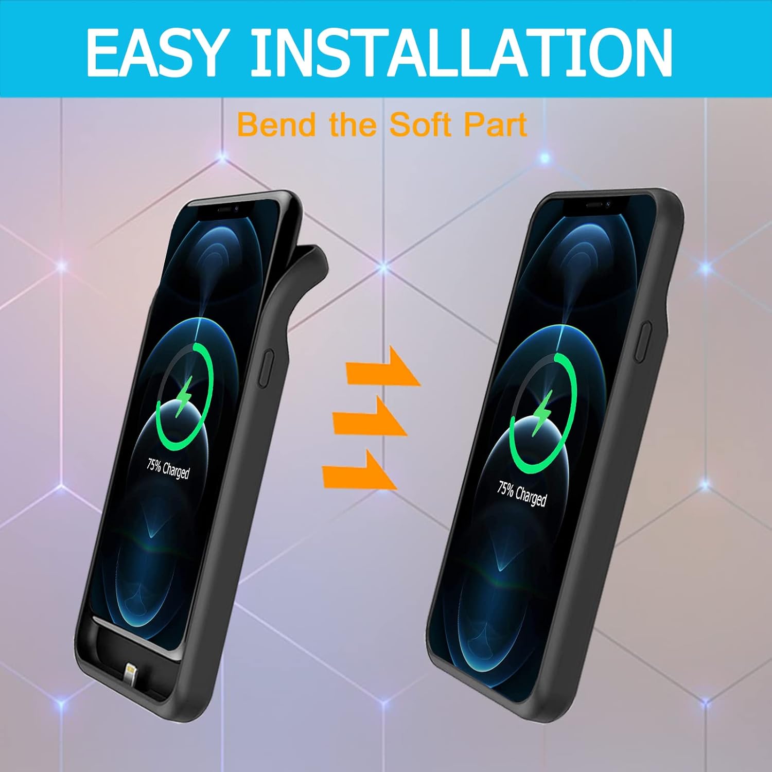 - ✔【Important Note】 - This smart battery case is only compatible with iPhone 12 Pro Max, Not applicable to other models.please use an Lightning cable to charge it (the charging cable is included in the package). Please make sure that the phone is tightly attached to the bottom of the battery case, and regularly clean the dust or foreign objects from the charging port when in use.