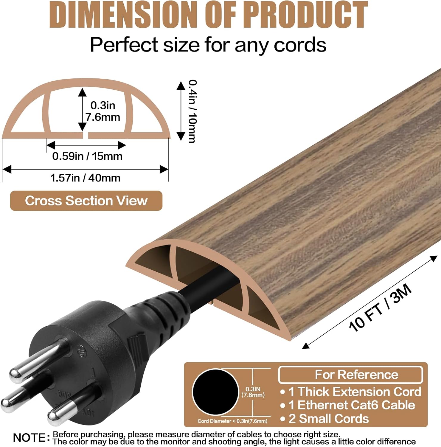 Floor Cord Cover Self Adhesive Cord Hider,10FT Cable Management, Extension Strip Protector for Wires, Prevent Cable Trips for Offices, Gyms, Exhibitions Cavity:0.51"(W) x0.3(H) Woodsmokedbrown