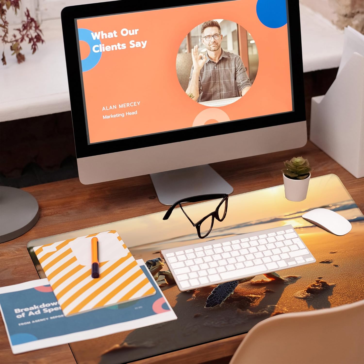 Large Gaming Mouse Pad for Desk, Baby Turtles On Beach Desk Mat, Cute Sea Turtle Desk Pad, 31.5"x15.7" Extended Big Computer Keyboard Mouse Pad with Non-Slip Base and Stitched Edge