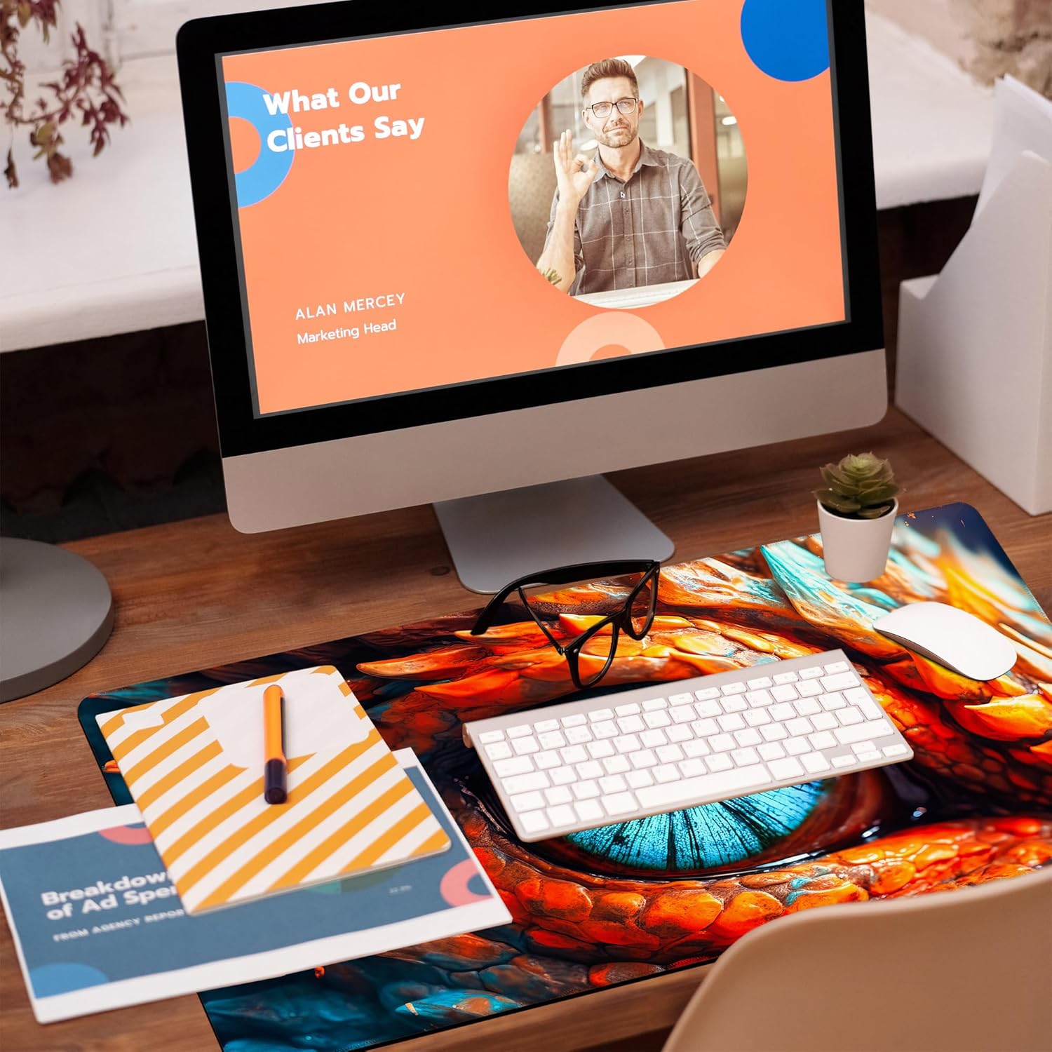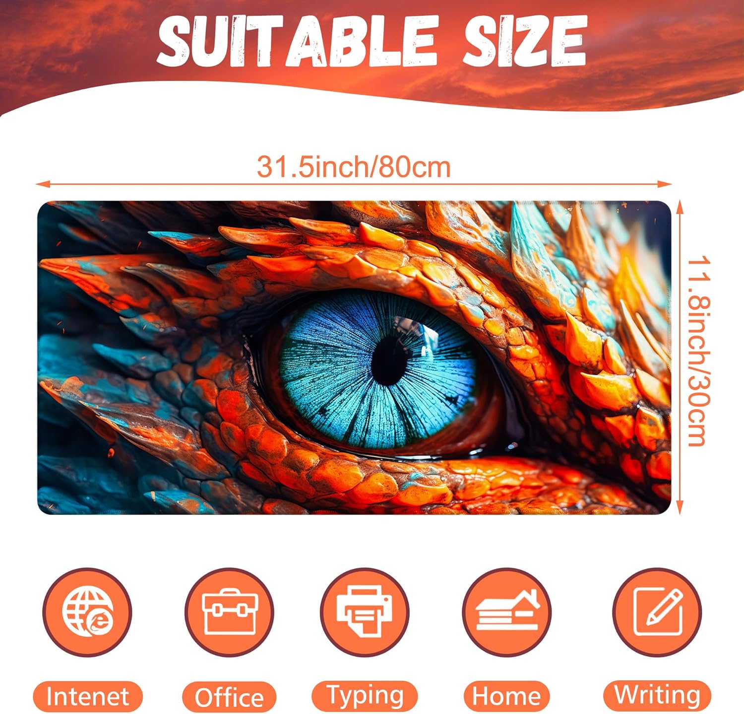 Large Gaming Mouse Pad for Desk, Dragon Blue Eyes Desk Mat, Dragon Eyes Desk Pad, 31.5"x15.7" Extended Big Computer Keyboard Mouse Pad with Non-Slip Base and Stitched Edge