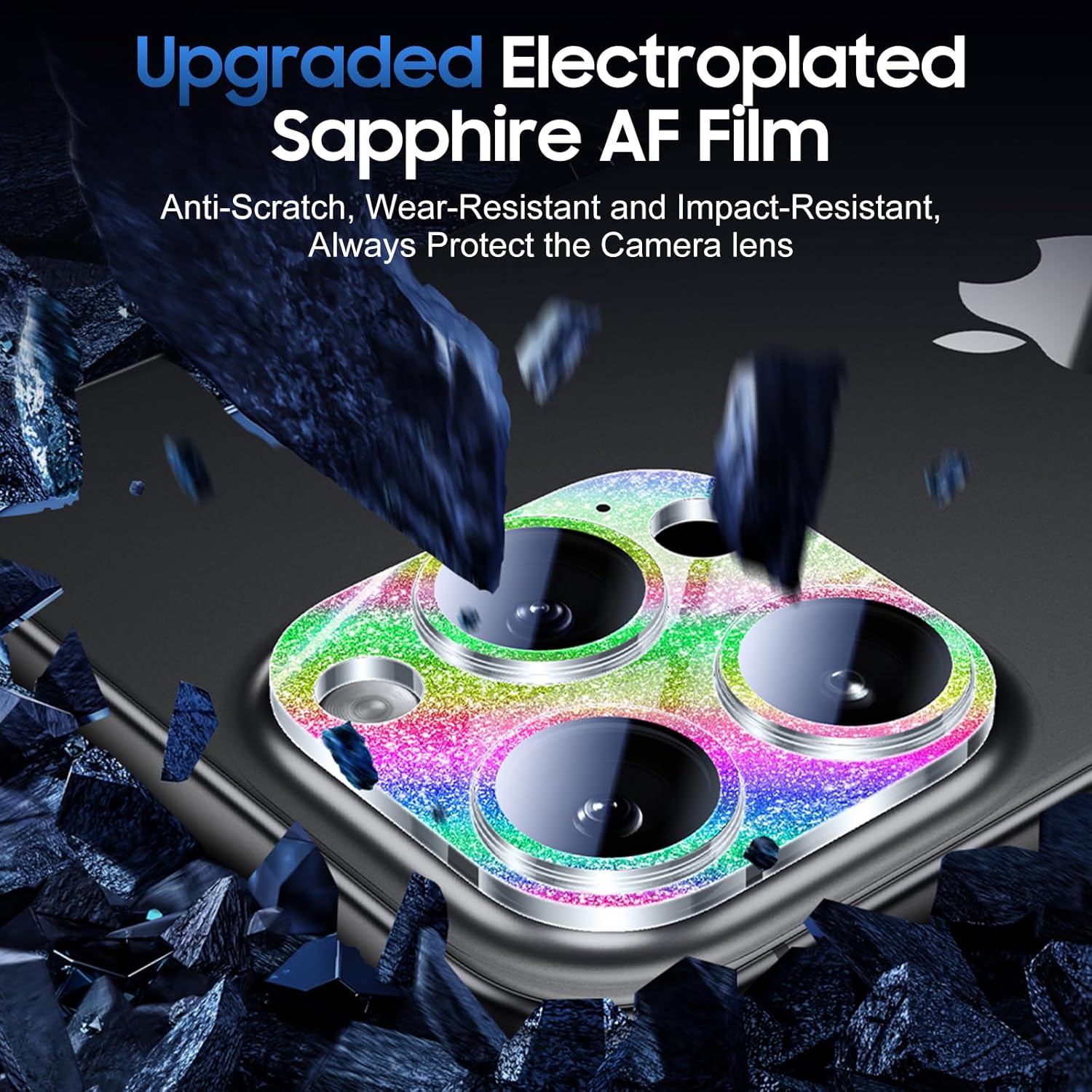 UniqueMe for 3 Pack iPhone 16 Pro/iPhone 16 Pro Max Camera Lens Protector - [Drop Protection] [Case Friendly] 9H Tempered Glass Camera Cover Screen [Update New Version] - Glitter Colorful