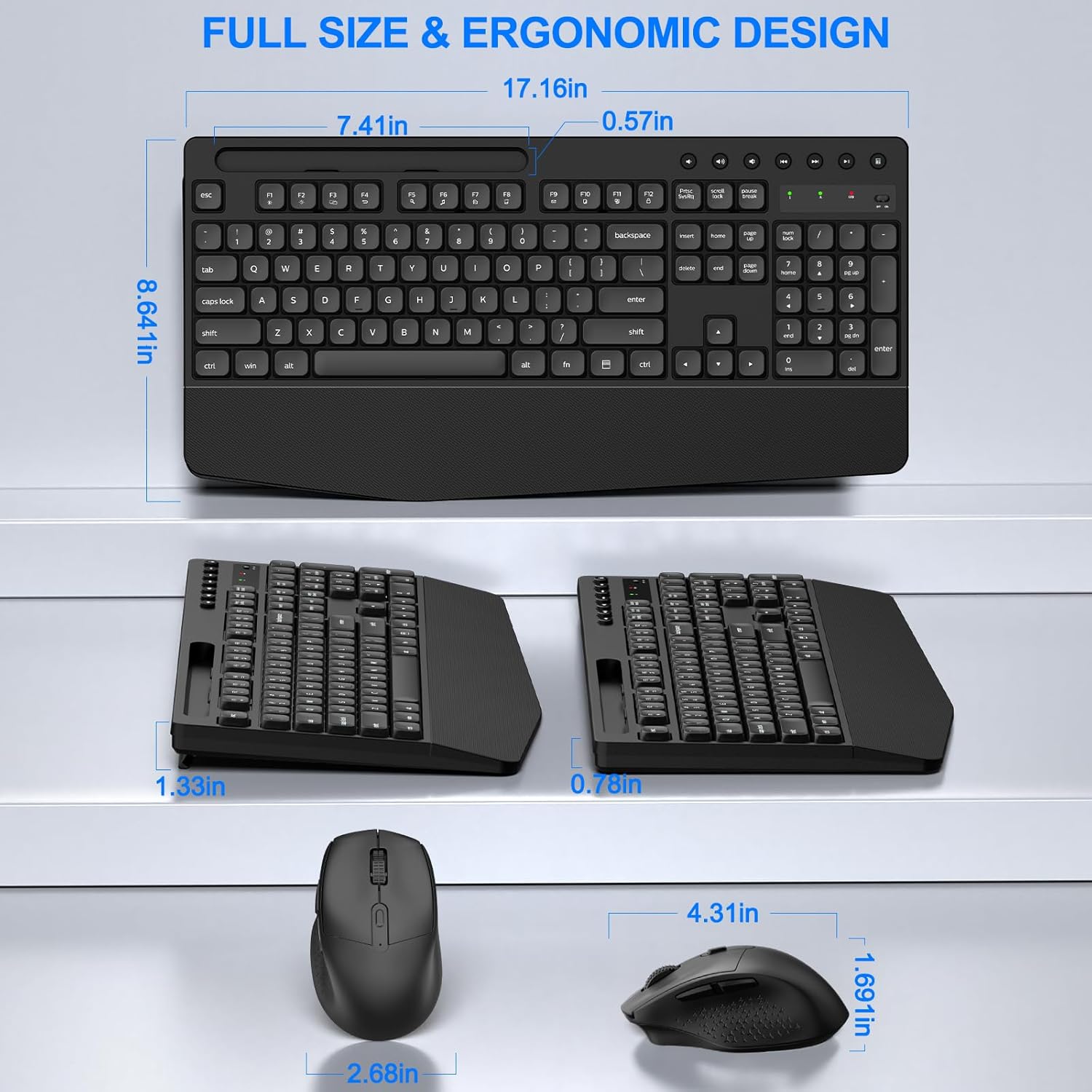 - 【ERGONOMIC WRIST REST】: Experience the upgraded ergonomic wireless keyboard, new fine grain design. Featuring a 2.9 inch wide wrist rest for enhanced hand support and a 8° tilt angle to prevent wrist strain, ensuring more comfortable and enjoyable