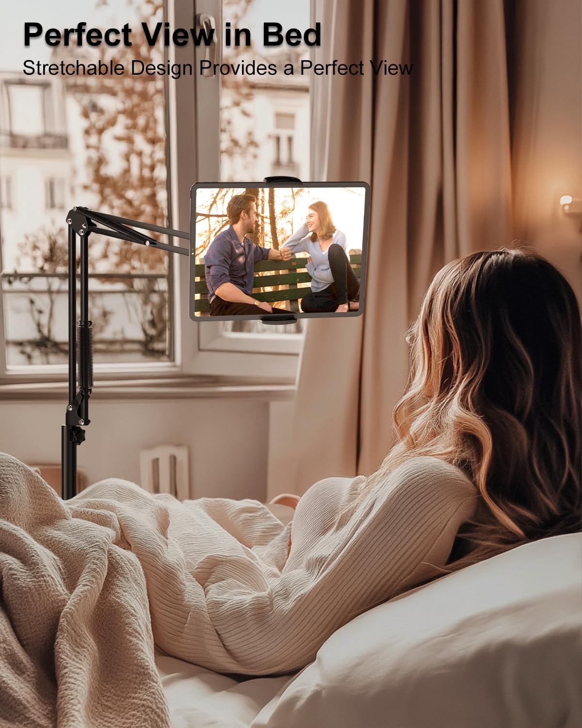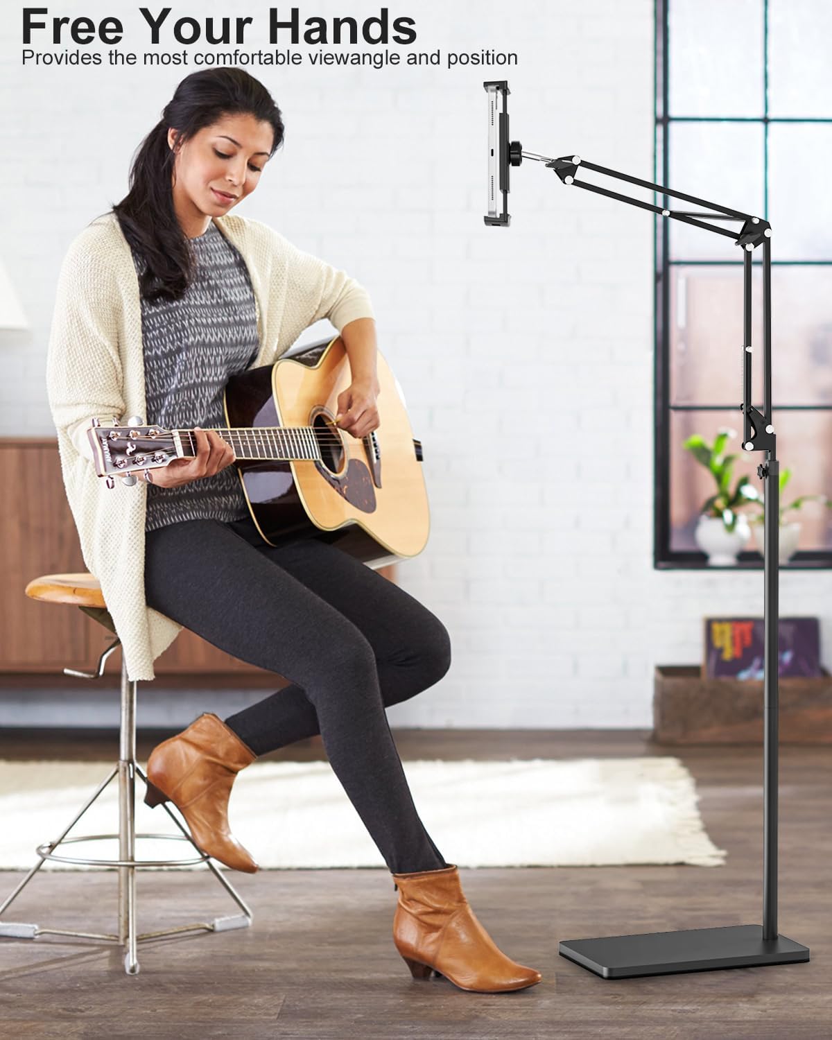 - 【Free Your Hands】Our tablet floor stand is designed for maximum convenience, offering the perfect setup for activities such as taking photos, recording videos, attending virtual classes, watching movies, reading ebooks, playing games, and more. Whether you're in the bedroom, kitchen, office, or classroom, this stand can easily extend over tables or beds to provide the best viewing angle