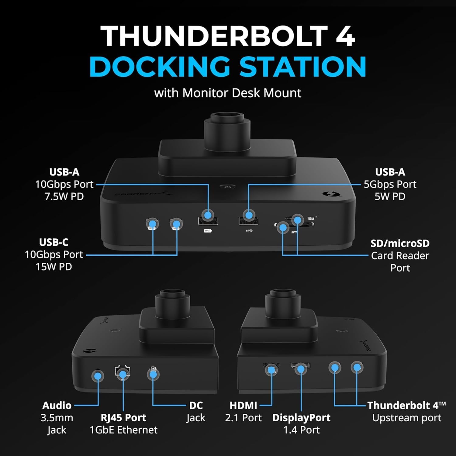 - TB4 Station And Mount: The Sabrent Thunderbolt 4 Docking Station with Monitor Desk Mount combines the utility of a comprehensive docking station with the convenience of a flexible gas-lift monitor desk mount with one or two (SB-DSAM) displays.