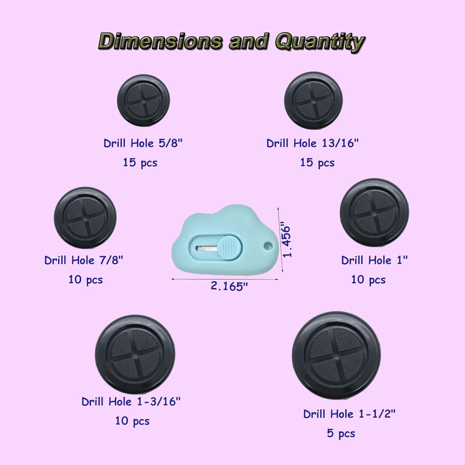 - Rubber grommets kit include 6 size(1-1/2 " 5pcs, 1-3/16" 10pcs,1" 10pcs,7/8" 10pcs, 13/16" 15pcs, 5/8" 15pcs),1retractable knife,total 66pcs rubber grommet kit.