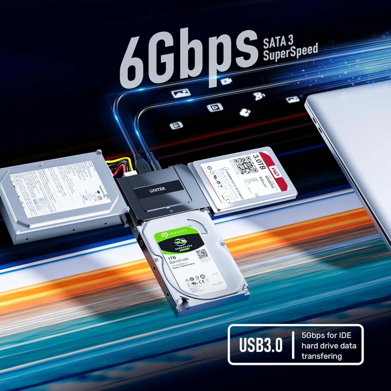 - 6Gbps: With data transfer rates of up to 6 Gbps for SATA 3.1, you can expect fast and efficient file transfers. The USB C adapter is backward compatible with USB 3.0/2.0/1.1 for added convenience, 5Gbps transfering rate for IDE hard drive disk.
