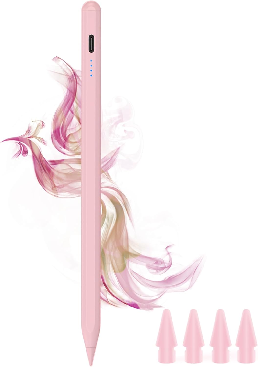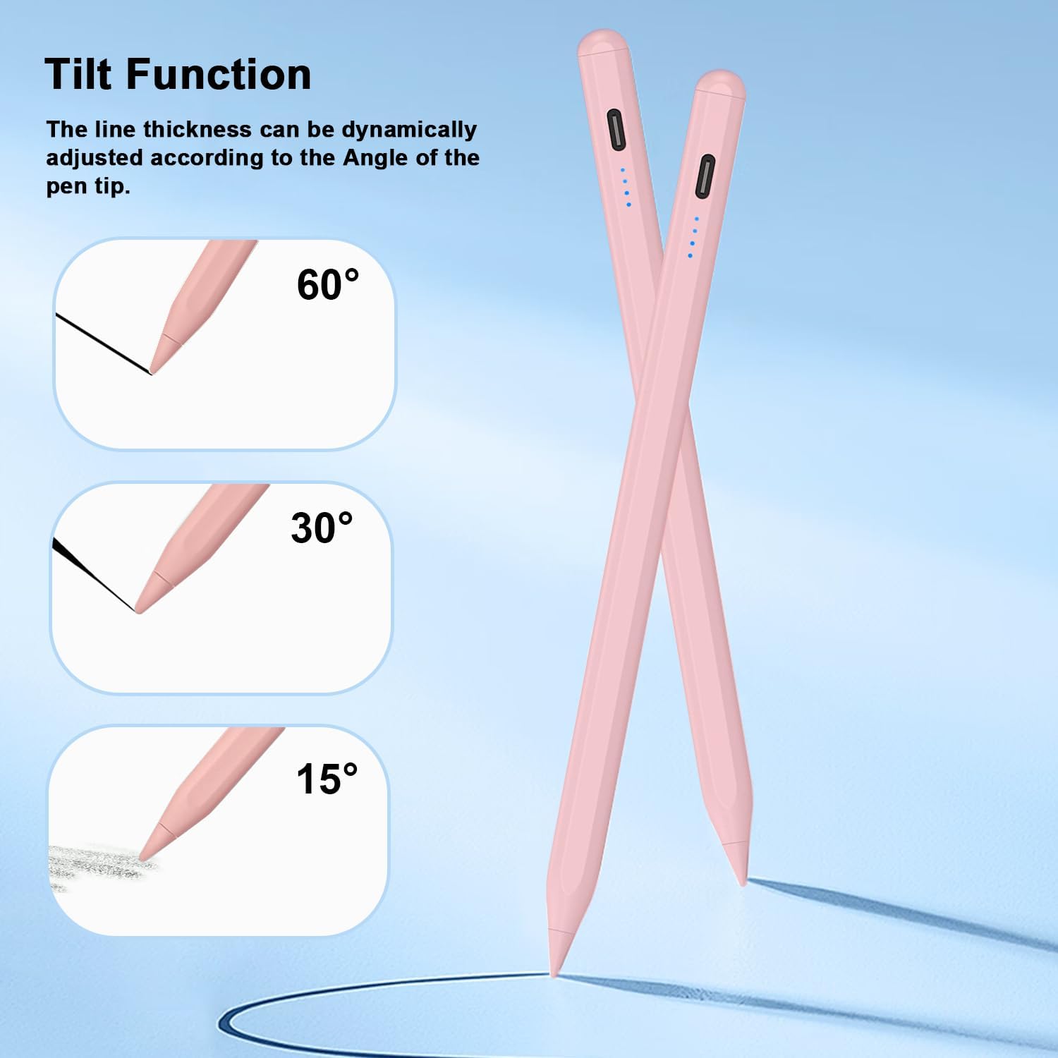 Stylus Pen for iPad 9th&10th - Type-c Charging Pencil for ipad Palm Rejection Active Pen Compatible with (2018-2025) Apple iPad 6/7/8/9/10/11(A16), Air 3/4/5/M2/M3, Mini 5/6, Pro 11"/12.9"/M4(Pink)
