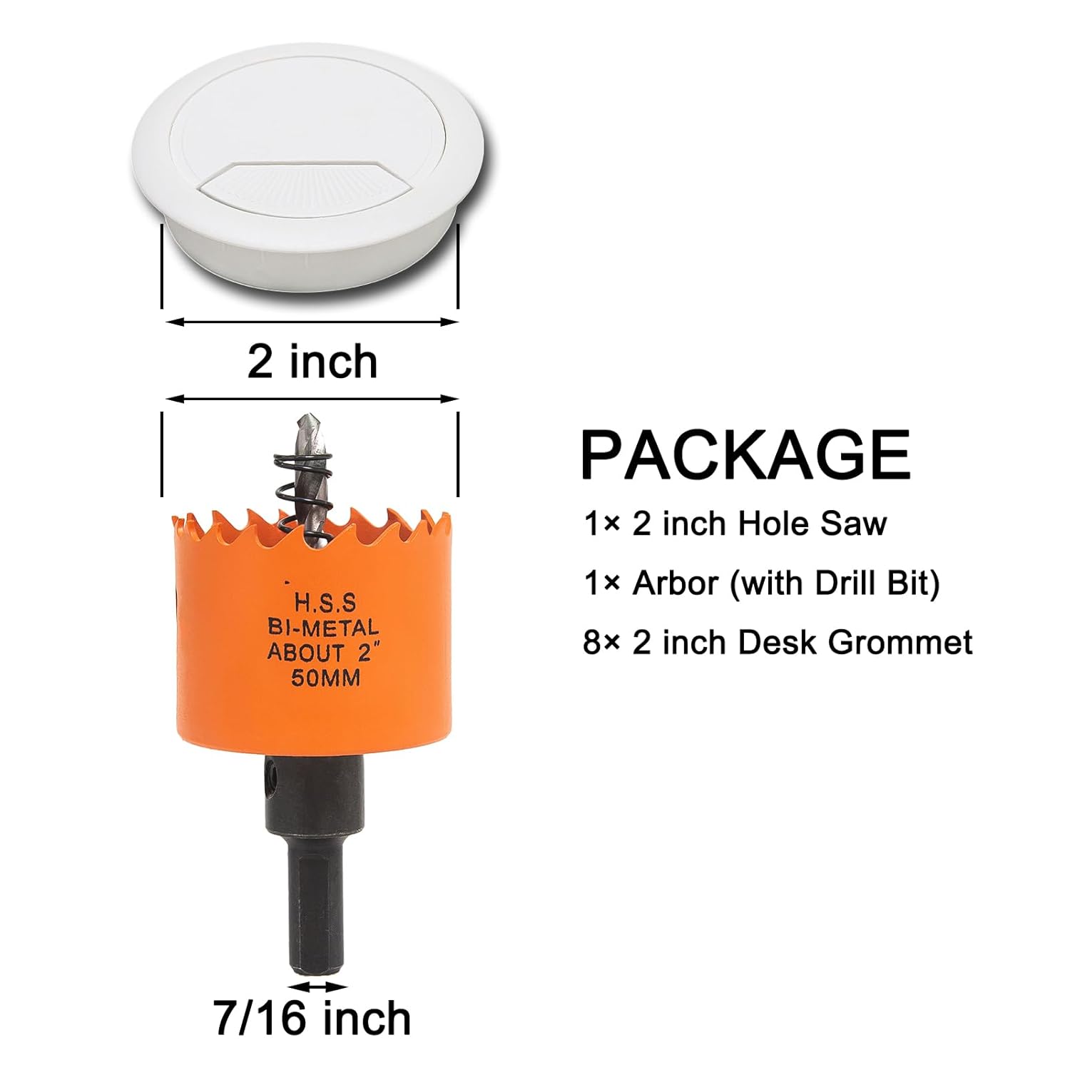 - Package Included: 8 pcs 2 inch desk grommet, 1 pc 2 inch bimetal hole saw with arbor
