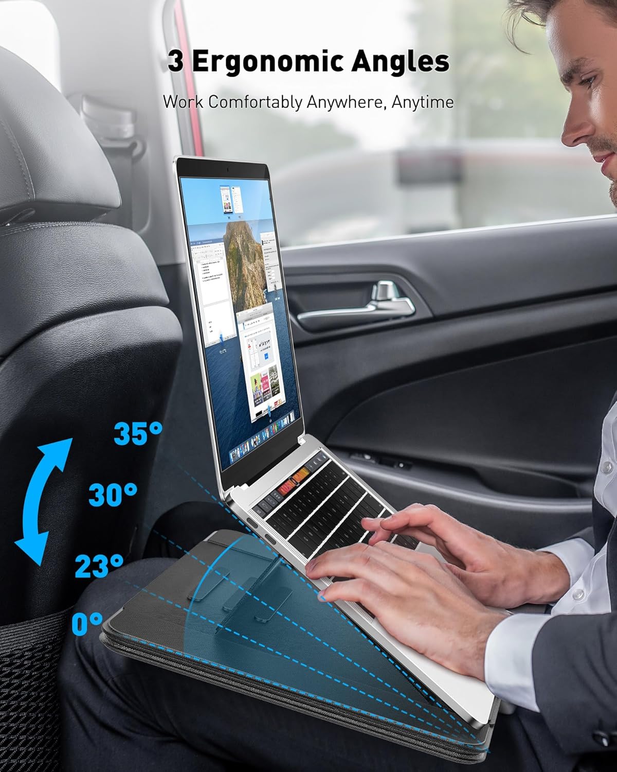 - Adjustable Lap Desk With 3 Ergonomic Angles - Our innovative laptop lap desk offers 23°, 30°, and 35° viewing angles for optimal comfort, making it one of the best gifts ideas. This portable lap pad reduces neck and wrist strain, ensuring a comfortable experience during extended use on any surface.