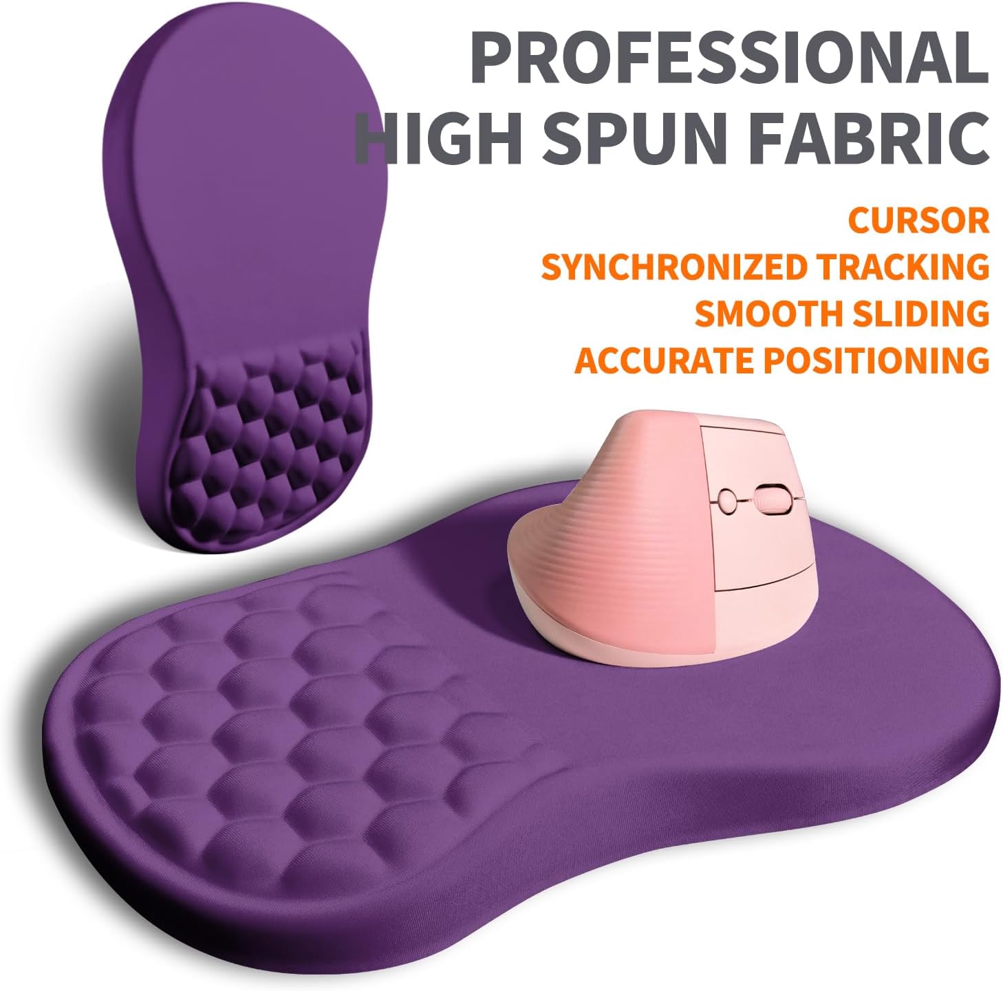 Ergonomic Joint Wrist Support Mouse Pad with Memory Foam Cushion Massage Bump, Carpal Tunnel Pain Relief Mousepad Slope Design for Wrist Rest, 11.8x7.9 in, Dark Violet