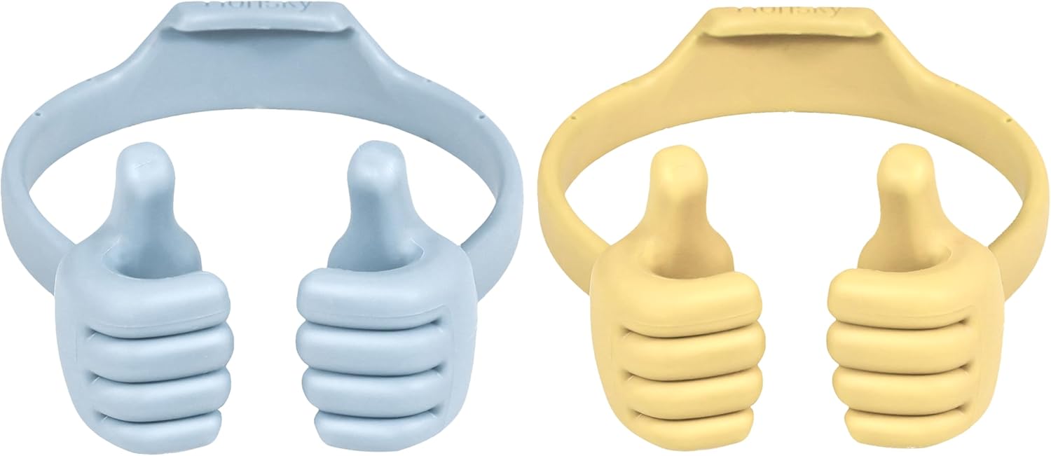 Honsky Thumbs up Cell Phone Stand Holder, Ok Stand Tablet Stand Cradle for Desk Desktop Smartphone Cellphone Mobile Phone Tablets - Universal Adjustable Flexible - Light Blue/Light Yellow