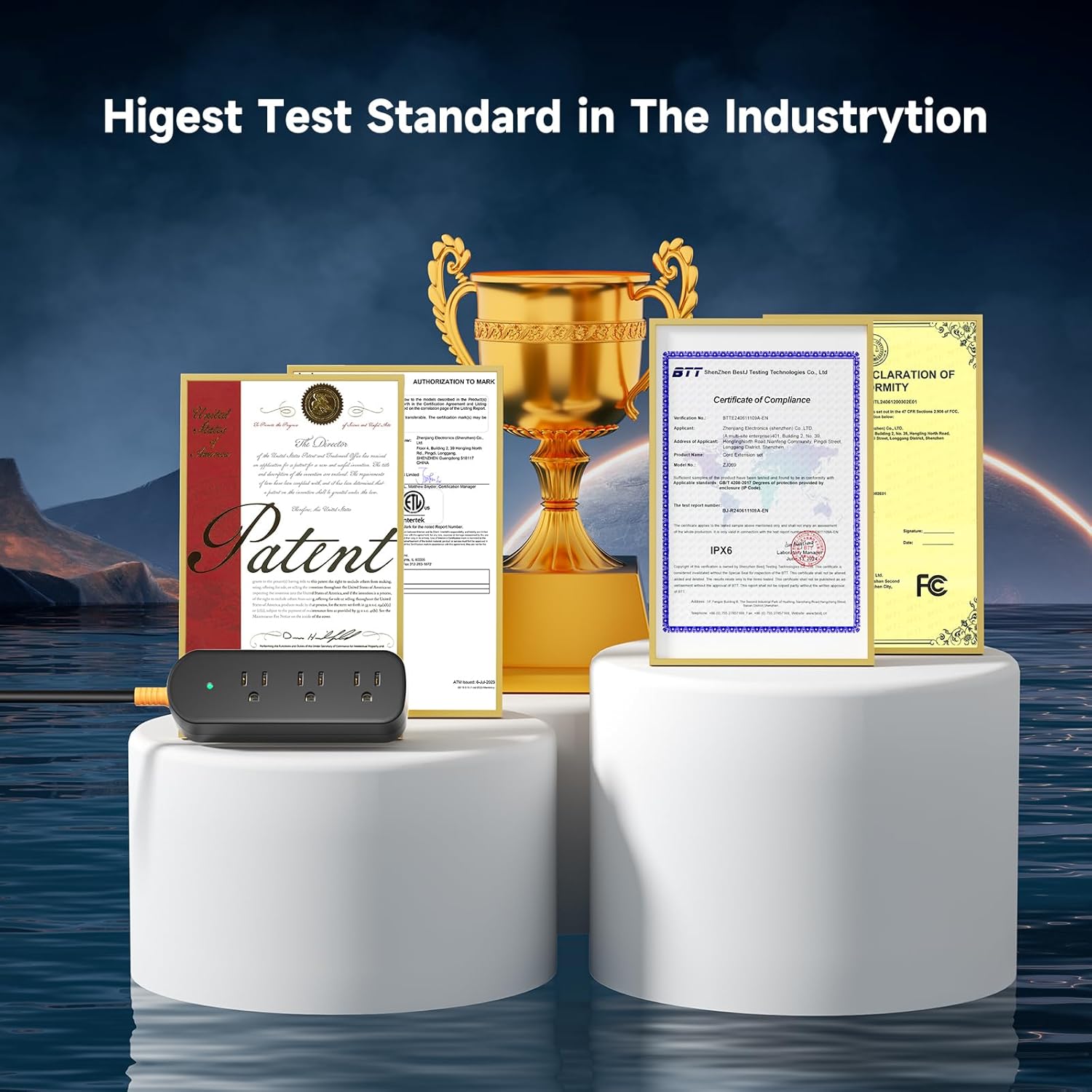 - Whether you're looking for a heavy-duty power strip for your home office, an outdoor power strip weatherproof for your garden parties, or a travel power strip for your next trip, our outdoor power strip weatherproof design is perfect for you, it comes with an electric shockproof, overload protection, IPX6 waterproof, heat-retardant and so on, it ensures the safety of your device and family