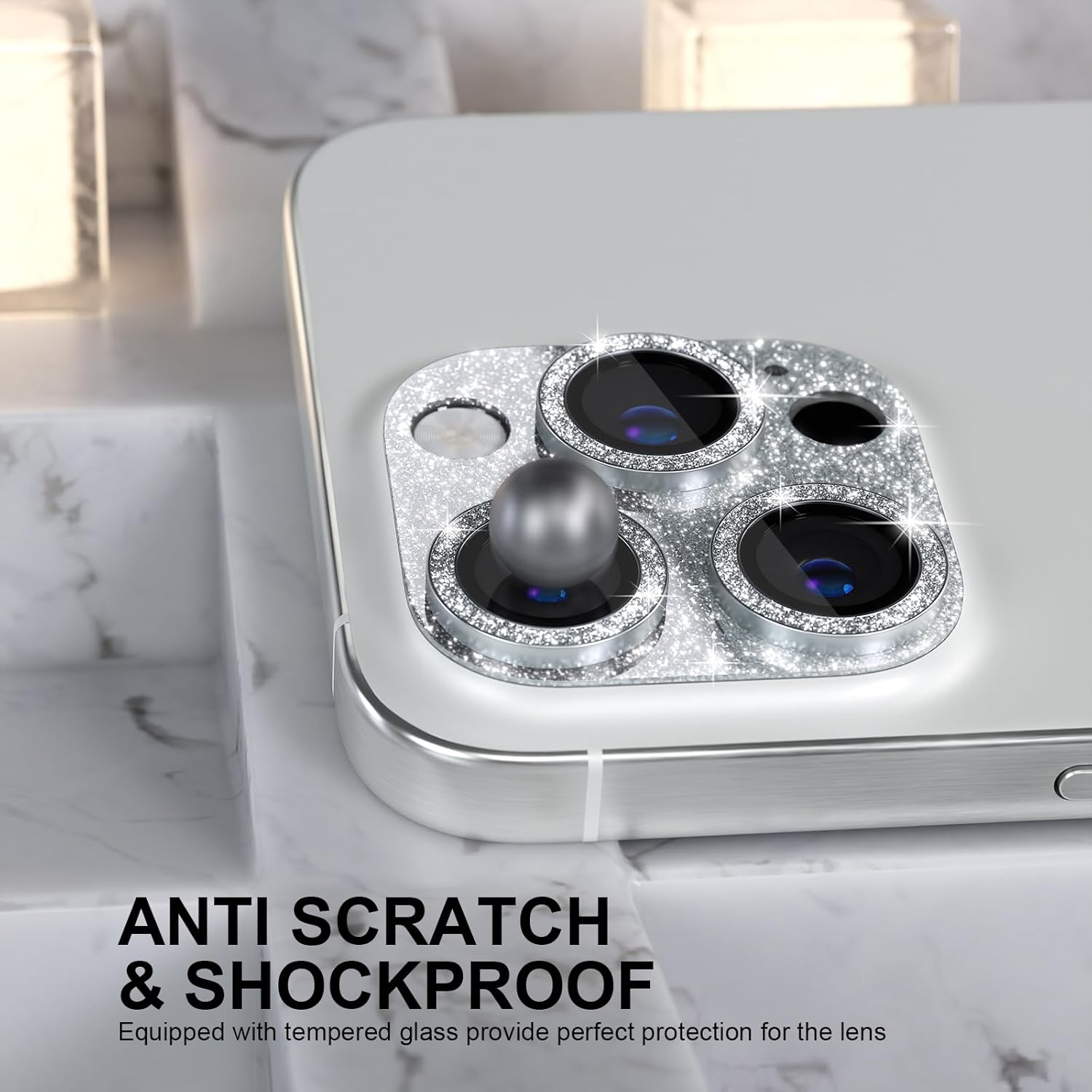 Choiche Compatible for iPhone 16 Pro/iPhone 16 Pro Max Camera Lens Protector, Bling Camera Cover with 9H Tempered Glass Lens Screen Protector Metal Ring Decoration Accessories (Glitter-Silver)