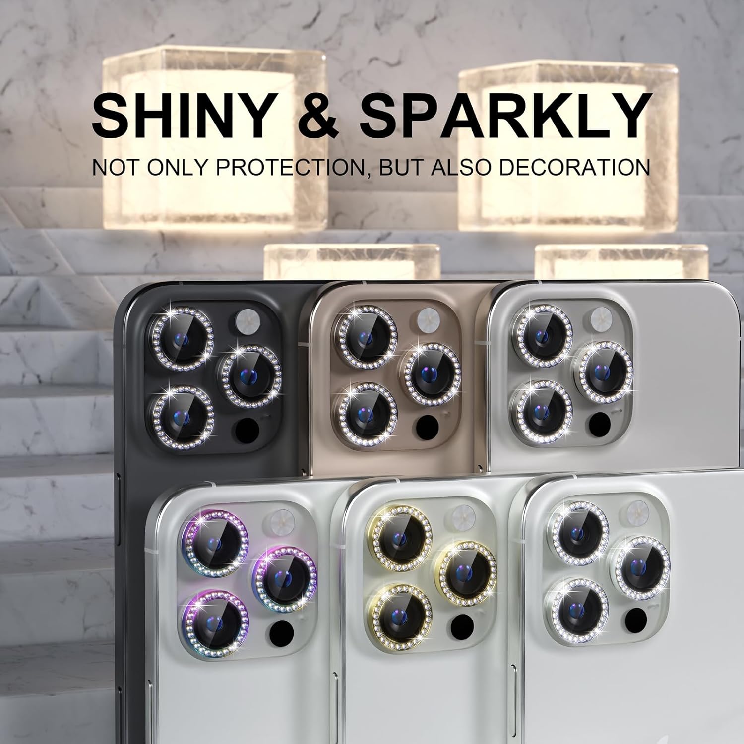 - Personalized Decoration: Made of high-quality aviation aluminum metal ring and 9H tempered glass and inlaid with bling rhinestones to give your 16 Pro/Pro Max camera lens a diamond gorgeous appearance, shining in the sun, very eye-catching and complimentary.