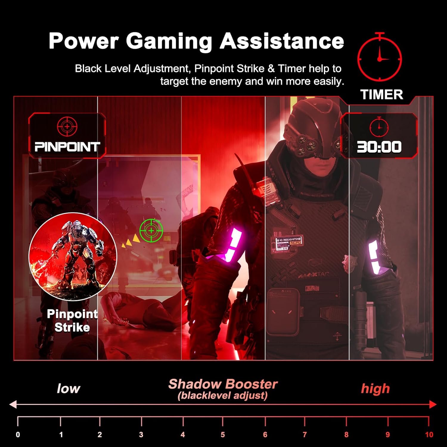 - VESA mount (100x100mm), 5°to 15°tilt , 178° wide viewing angle, CrossHair /Timer/ Shadow Booster(blacklevel adjust)/RTS /FPS /RACING