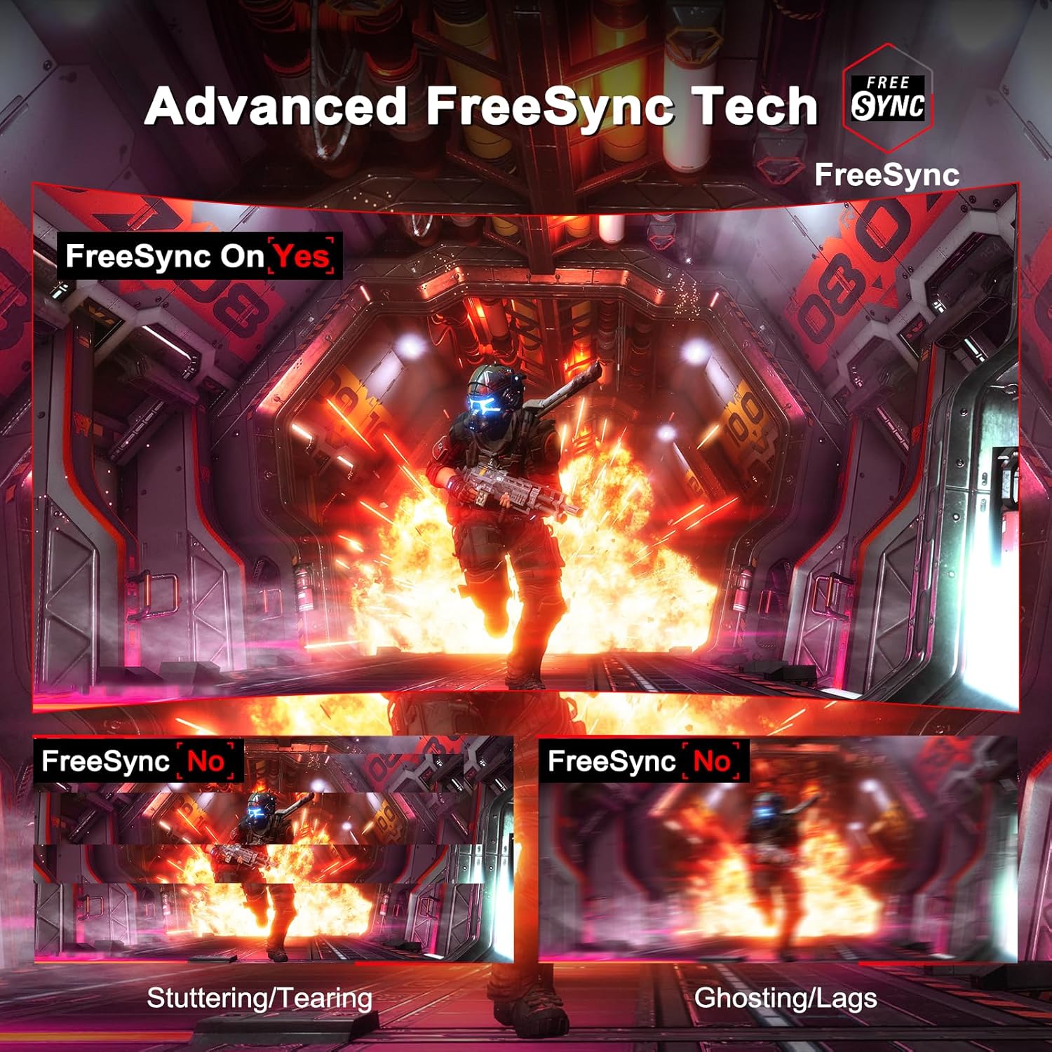 - Display: 1500R curvature: more immersive & natural visual design for human eyes,MPRT 1ms response time, FreeSync, 130%sRGB color gamut, contrast ratio 3000:1, brightness 300nits, Delta E<2, HDR, over drive, anti-flicker, anti-glare