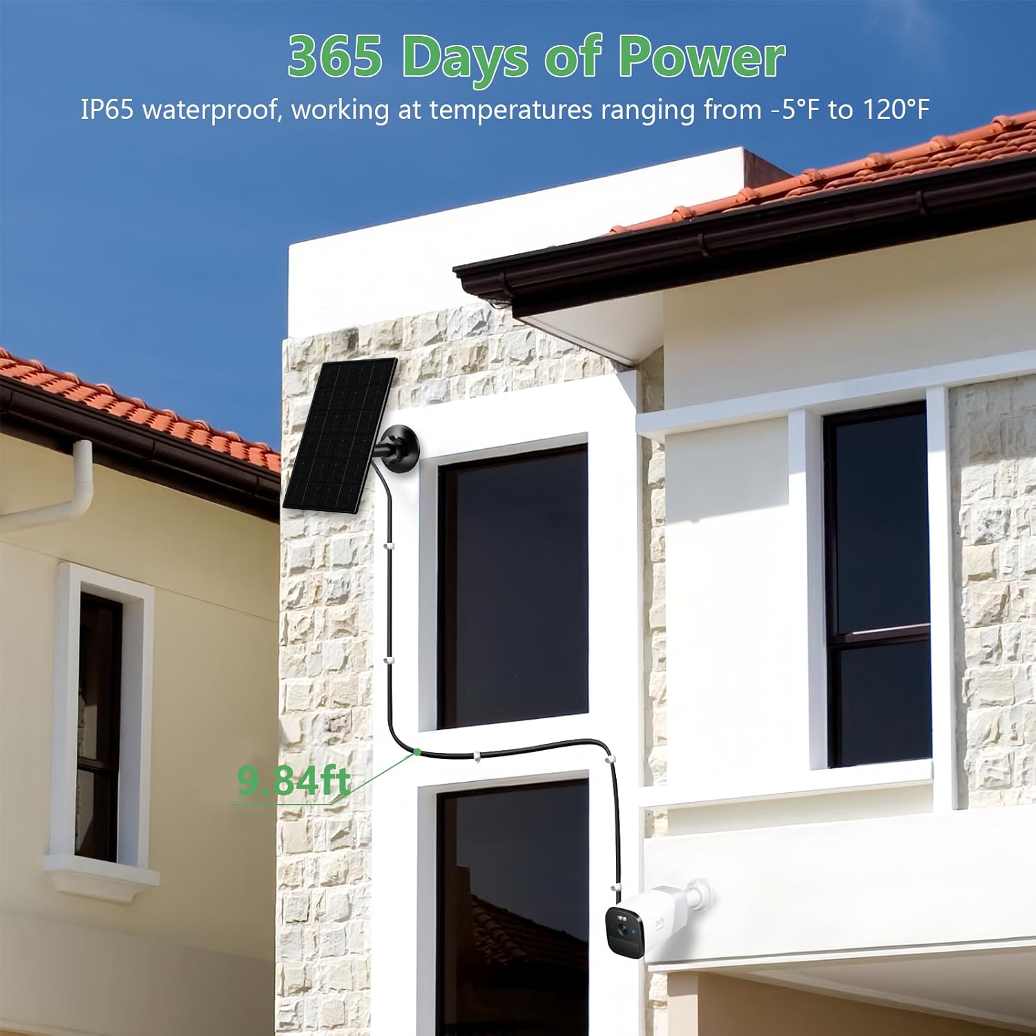 - Compatibility - Our 4W usb solar panel charger is specifically designed for DC 5V rechargeable battery cameras with micro USB or USB Type-C ports. Please note that this security camera solar panel is not compatible with Arlo, Blink, Ring, Google Nest, Kasa cameras, or any plug-in cameras without batteries.