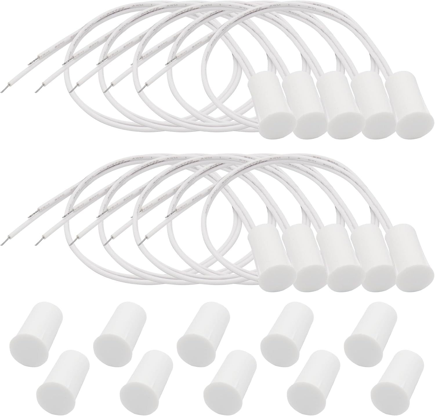 10PCS Recessed Wired Security Window Door Contact Sensor, Normally Closed NC, Door Alarm Magnetic Reed Switch with 2 Wire, ABS White, RC-33