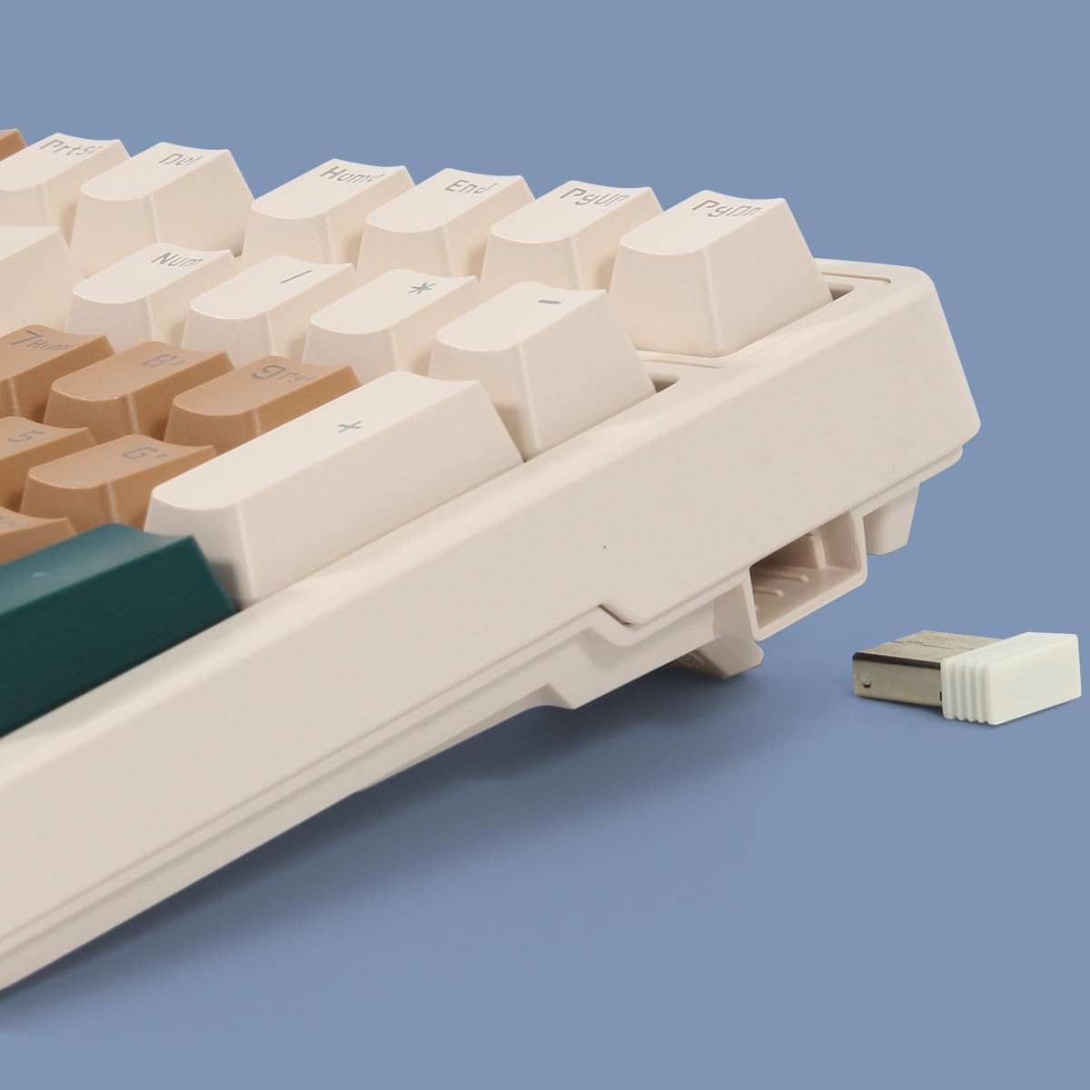 - High quality PC Gaming Keyboards : Durable ABS keycaps with comfortable to touch, wear-resistant characters will not fall off. There is a 2.4G receiver storage area on the right side of the pc keyboard to prevent loss of it.