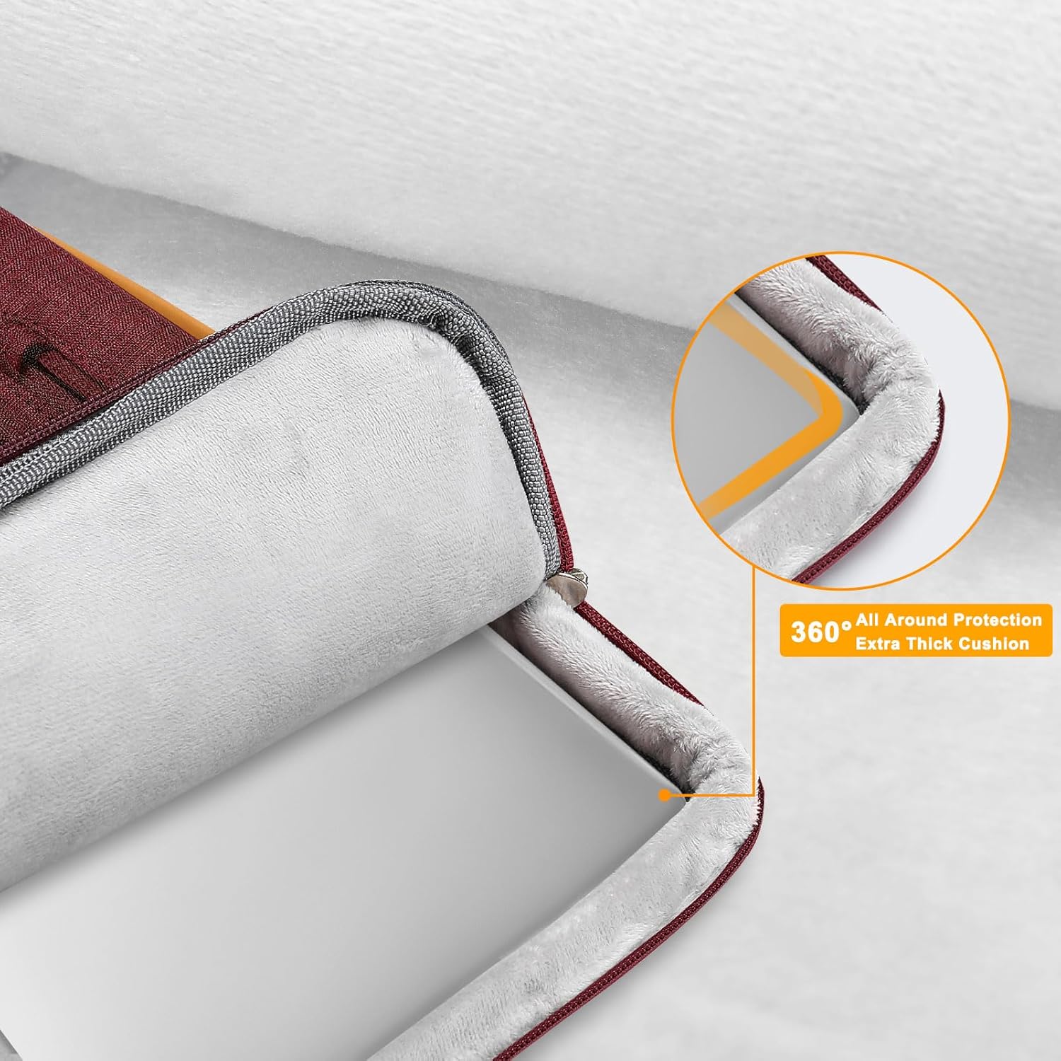 - 360 degree all around protective reinforced interior edge protect your laptop from any accidental dropping. Features foam padding layer and fluffy fleece fabric lining for bump and shock absorption and protection of your computer from accidental scratches. Side opening double zippers on the bag glide smoothly and allows convenient access to your laptop computer.