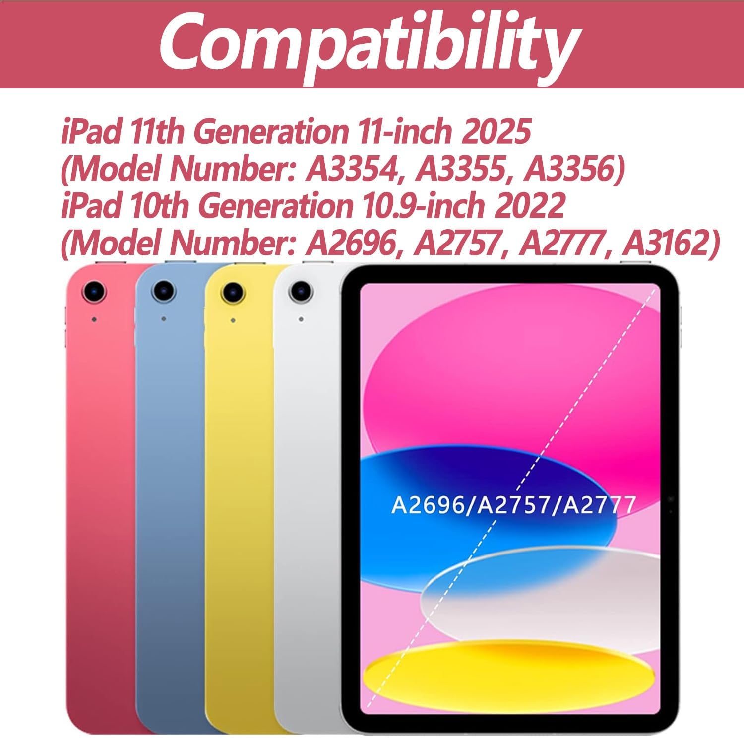 - Compatible Devices : Compatible with iPad A16 11inch 11th Generation 2025 (Model Number: A3354, A3355, A3356), Compatible with iPad 10th Generation 10.9inch 2022 (Model Number: A2696, A2757, A2777, A3162) Compatible with iPad A16 11inch 11th Generation 2025 (Model Number: A3354, A3355, A3356), Compatible with iPad 10th Generation 10.9inch 2022 (Model Number: A2696, A2757, A2777… See more