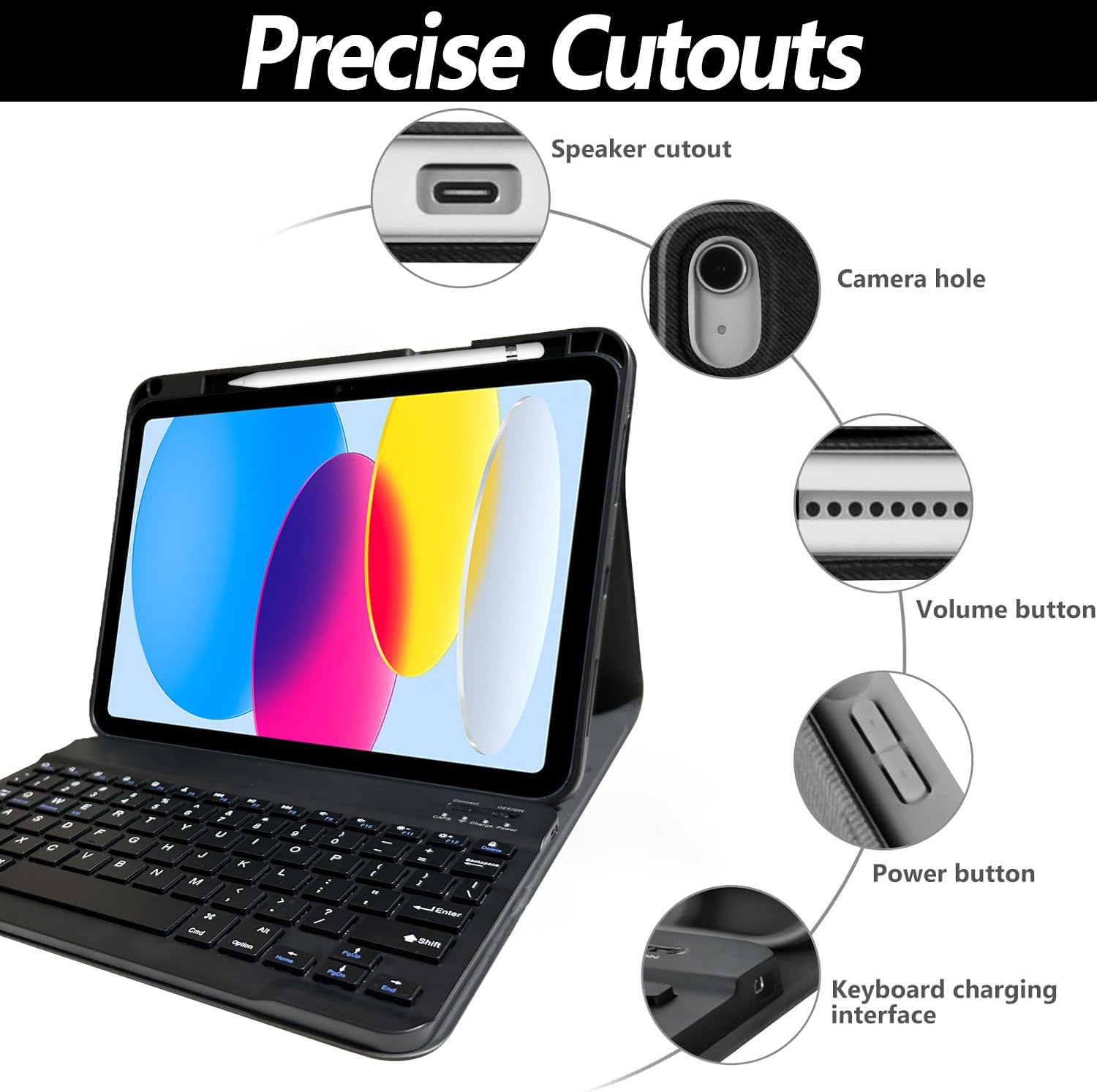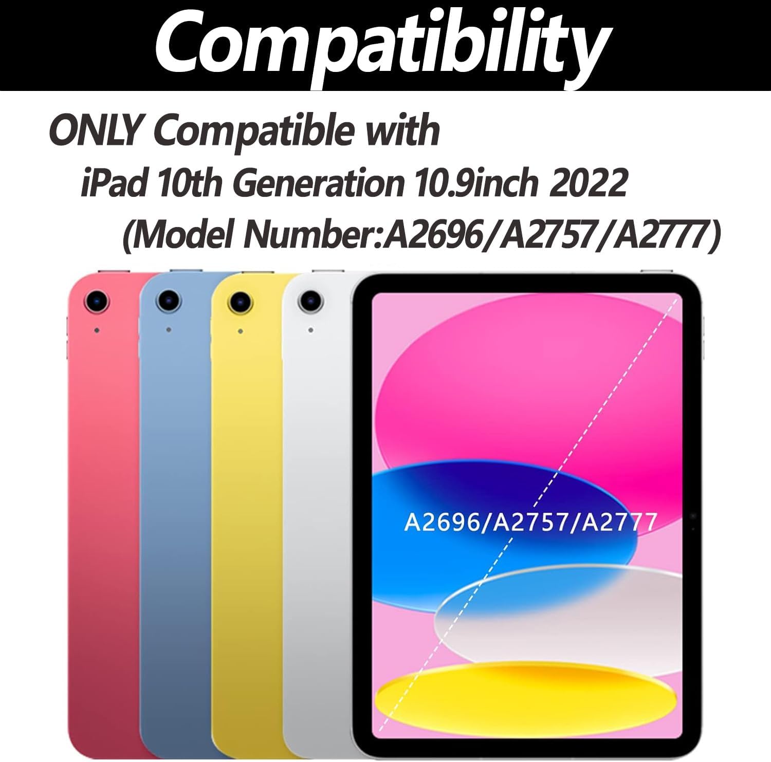- Compatibility: This iPad case with keyboard is designed for ipad 11/10th Generation 2025/2022 11/10.9 inch. ( Model: A3354 A3355 A3356, A2696 A2757 A2777 ). It is Not compatible with any other models. Please check the model number starting with "A" on the back of your iPad before purchasing