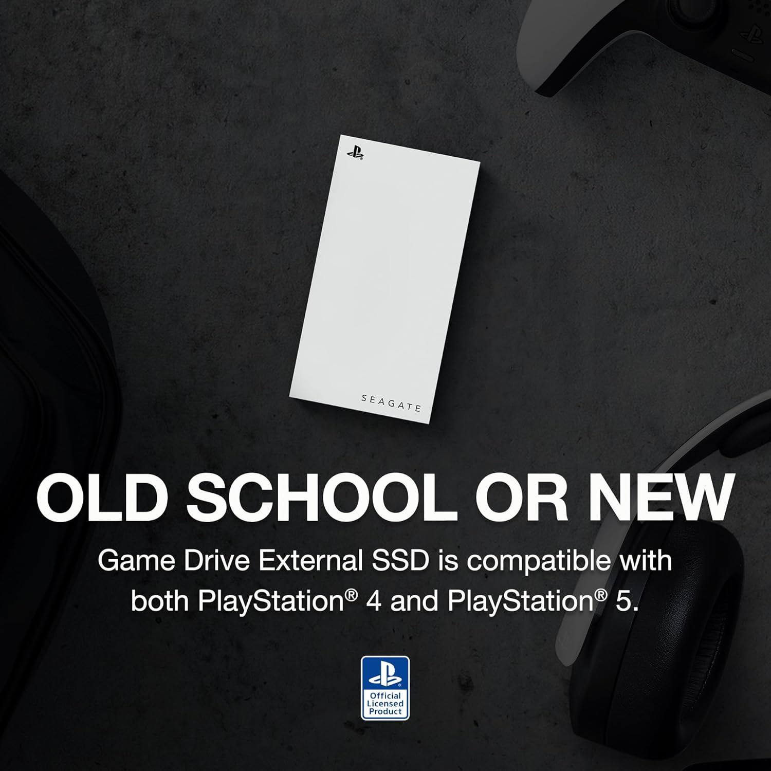 Seagate Game Drive for PS5 External SSD 2TB Solid State Drive - USB 3.2 Officially Licensed White with Blue LED Lighting (STMH2000100)