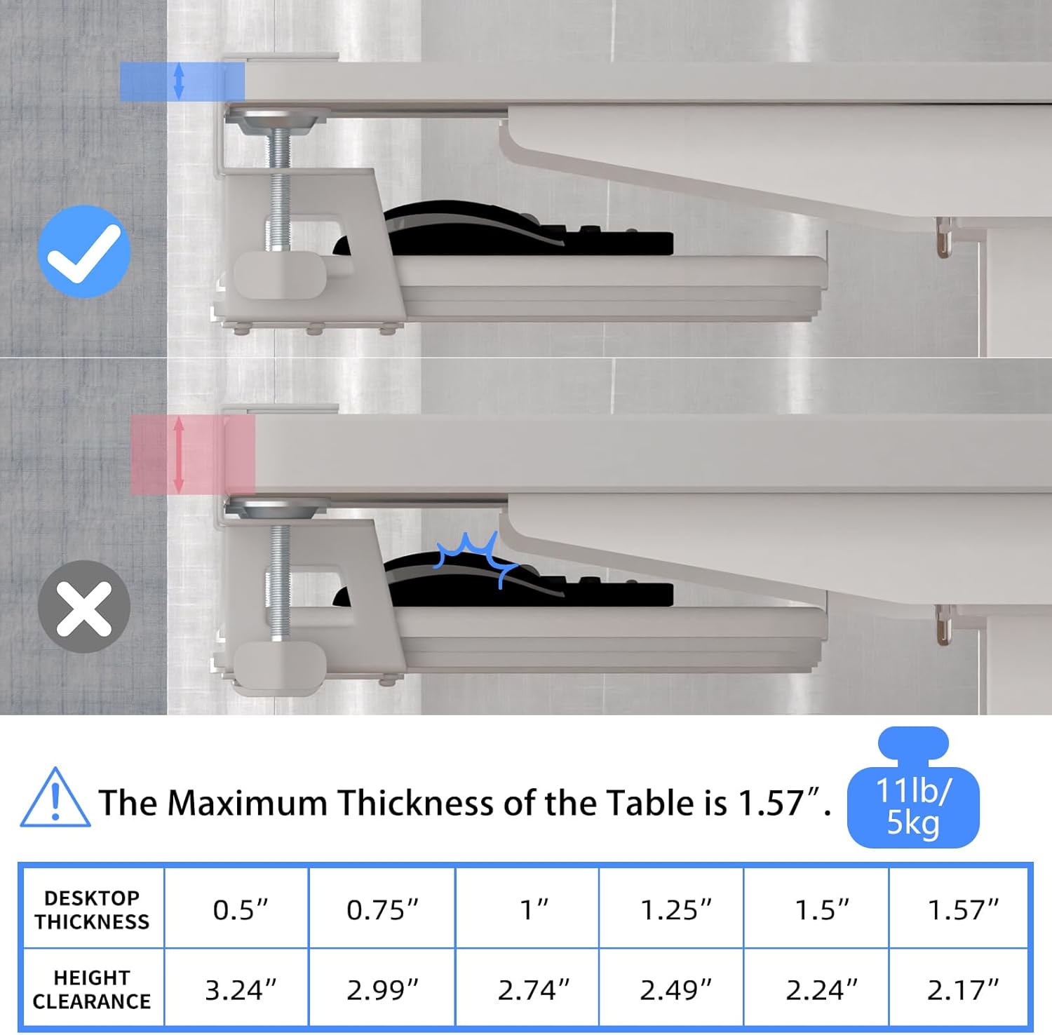 - Sturdy - Dual Steel C-clamps can tightly fix to your desk and holds up to 11lbs. Non-slip pads prevent your desk from scratching. Edge stopper can stop keyboard from falling when pushing back.