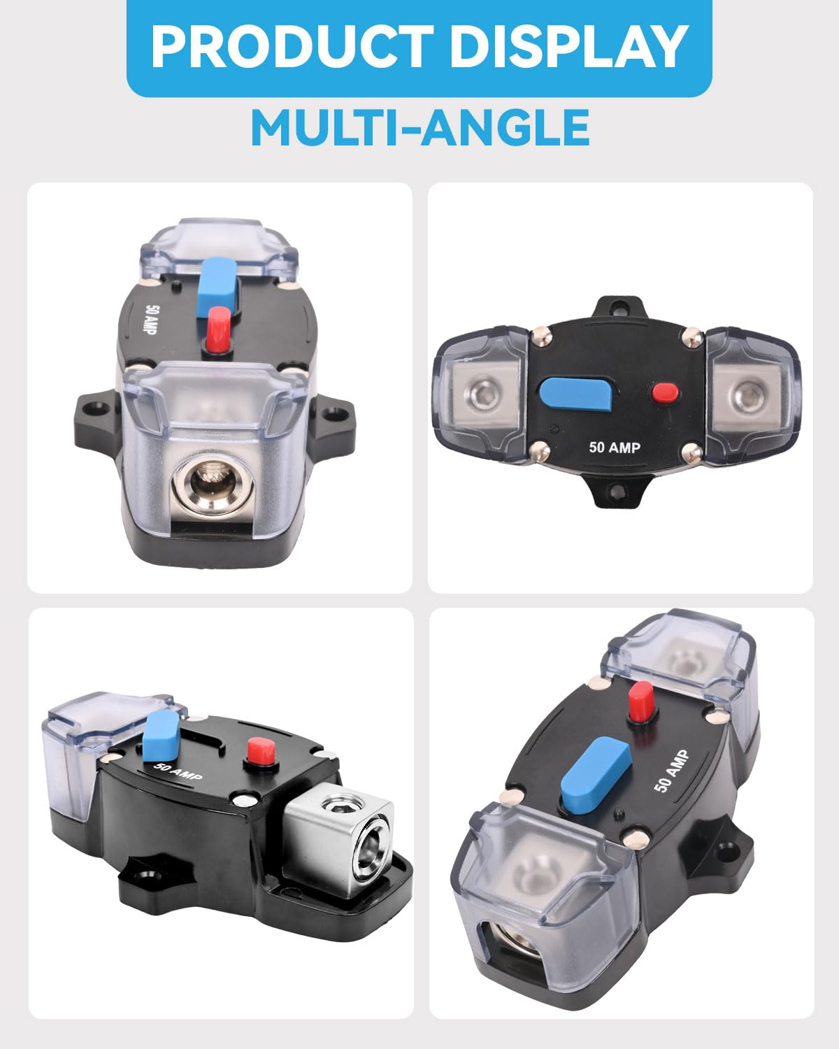 - CIRCUIT PROTECTION FUNCTION: The high amp manual reset 100A 12V circuit breaker offers robust protection by automatically disconnecting when the current reaches the predetermined limit, safeguarding circuits from excessive current. It includes overcurrent, overvoltage, residual current, and overcharge protection to prevent damage to electrical devices, making it ideal for Automotive Circuit Breaker needs