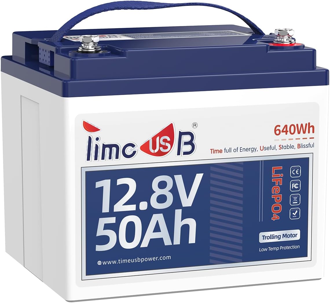 - ☔【IP65 Waterproof for Trolling Motor】 The Timeusb 12V 50Ah Lithium Battery is designed with IP65 waterproof technology, making it the perfect choice for trolling motors. It is resistant to rain, seawater, and humid environments, ensuring durability. Ideal for 30lb-70lb trolling motors Minn Kota/ Newport Vessels etc., fish finder, instrument panel etc