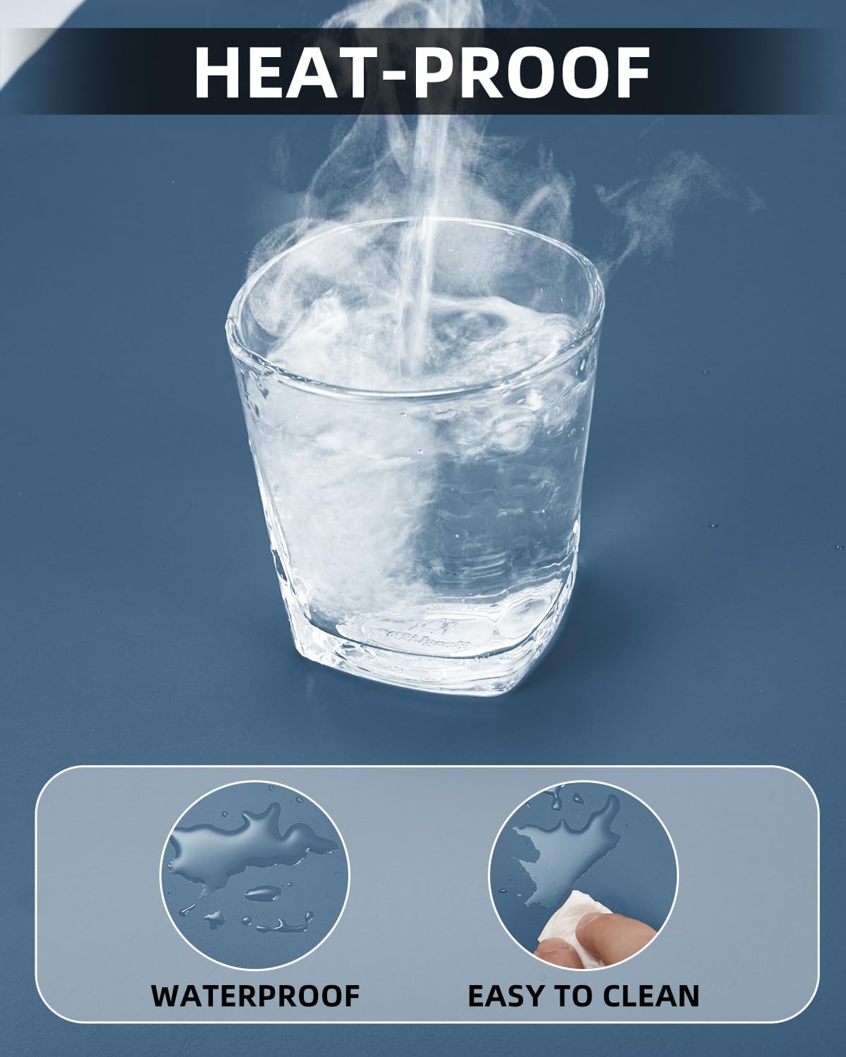PULeather Non-Slip Desk Mat, Large Mouse Pad & Laptop Desk Pad - Waterproof Writing Pad for Office & Home (Grey Blue, 35.4" x 17")