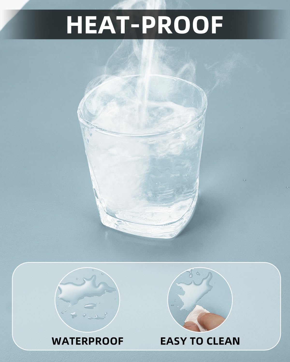Leather Desk Pad Protector, Large Mat, Mouse Pad & Keyboard Cover - Non-Slip PU Leather Blotter - Office & Home (Light Blue, 48" x 17")