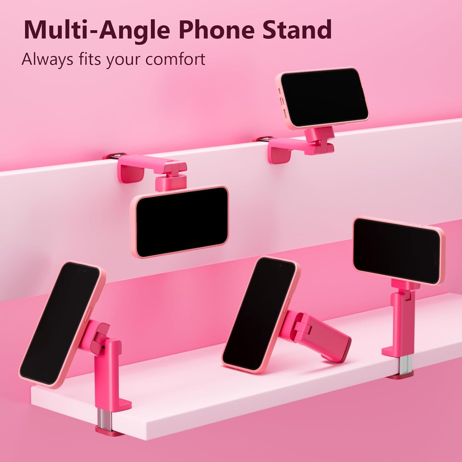 MiiKARE Travel Essentials Magnetic Airplane Phone Holder, Universal Handsfree Phone Mount for Flying with 360 Degree Rotation, Travel Must Haves Phone Stand for Desk, Tray Table, BarbiePink