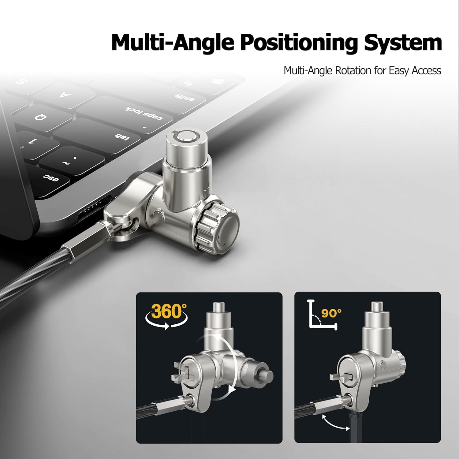 - Effortless Security System: The innovative knob-turn locking mechanism ensures quick and secure device protection. The universal laptop security lock features a smooth 360° rotating ball joint design for flexible positioning and easy access.