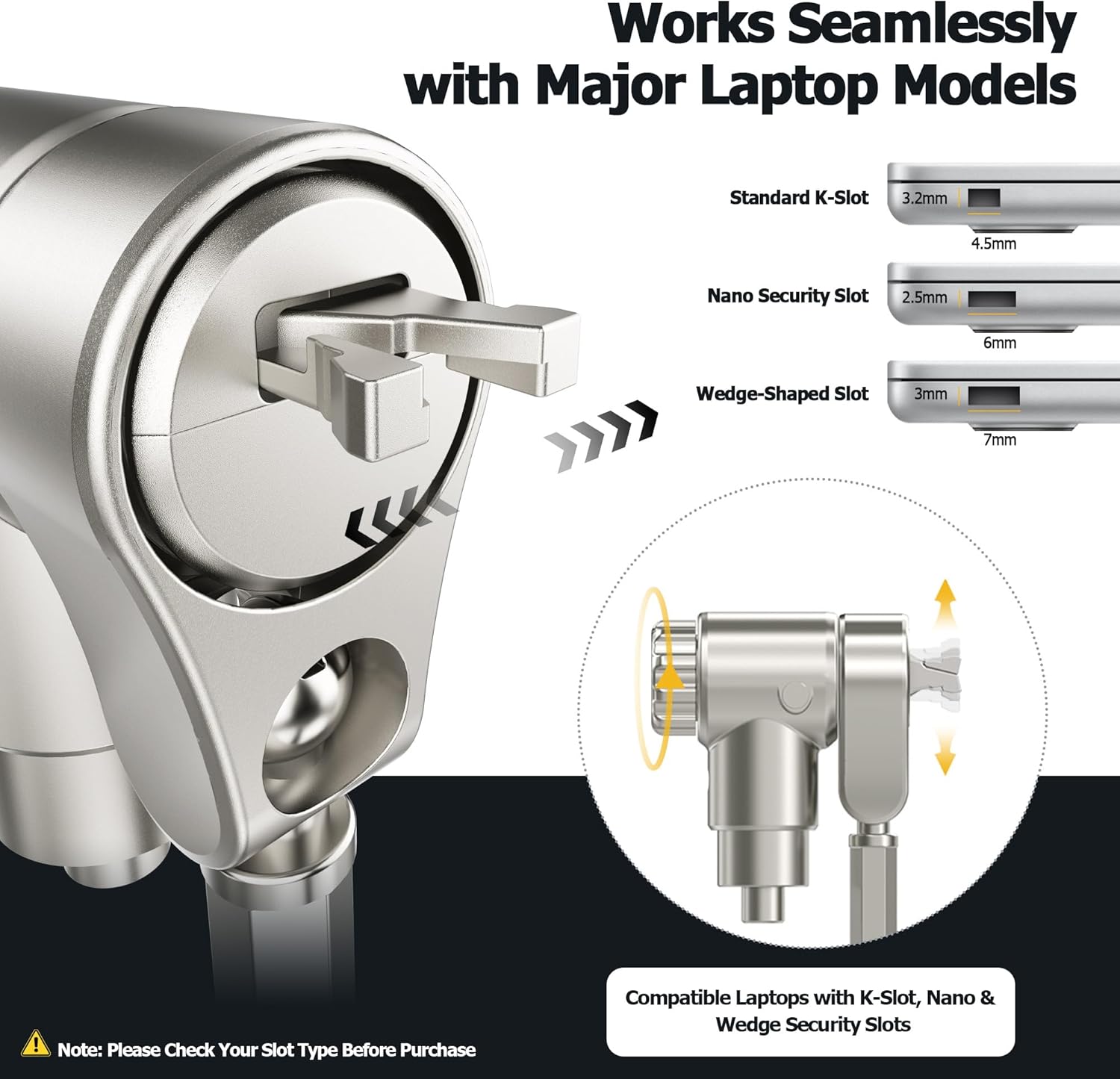 - Universal Laptop Security: Advanced 3-in-1 laptop locking cable design compatible with all major security slots including Kensington K-Slot, Nano & Wedge slots. Professional-grade laptop security cable ensures maximum device protection across brands and models.