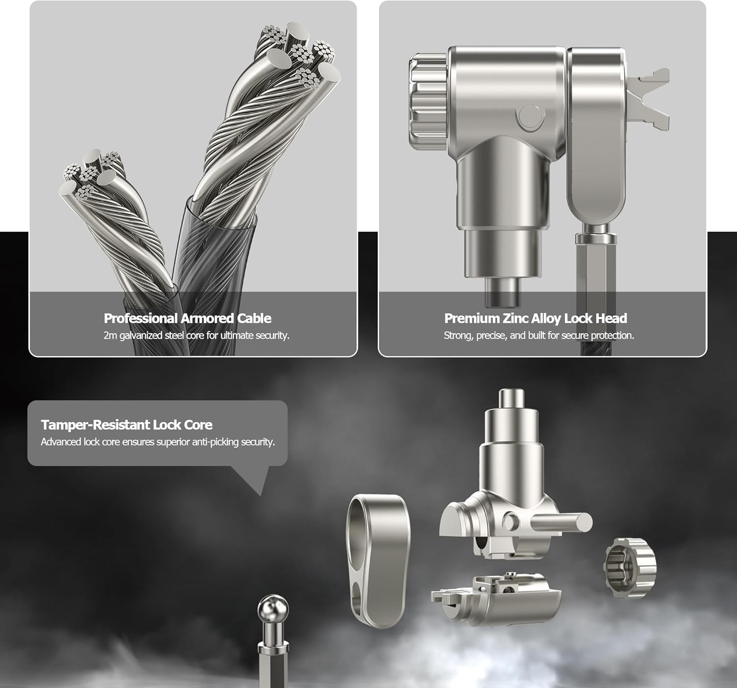 - Professional-Grade Design: The laptop security cable features precision-engineered components and durable construction. Our computer locking cable provides reliable protection in any environment, from offices to business travel locations.