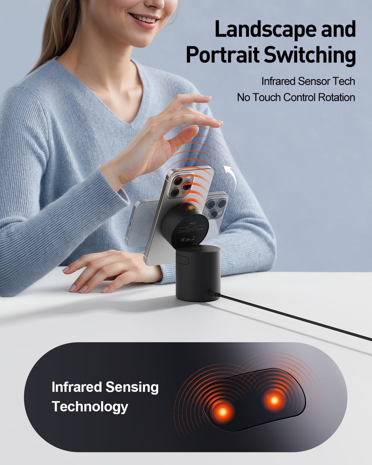 - Auto StandBy Mode: iWALK has devoted itself to the research and development of infrared (IR) Auto Turn technology. With the built-in infrared sensor, you can control the turning of the charging stand without physical contact, enabling your phone to switch between landscape and portrait screens.