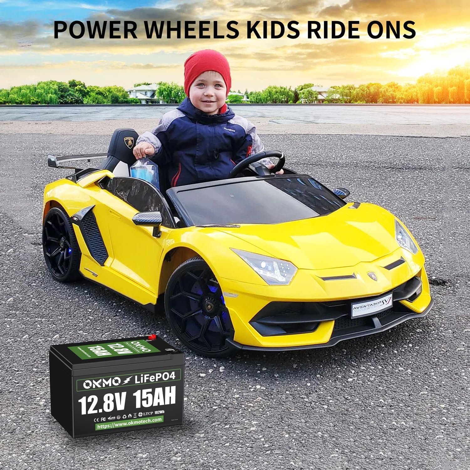 12V 15Ah Lithium Battery, Rechargeable LiFePO4 4000+ Cycles Rechargeable Battery Built-in 12A BMS for Scooter, Power Wheels, Fish Finder, UPS, Lighting and More