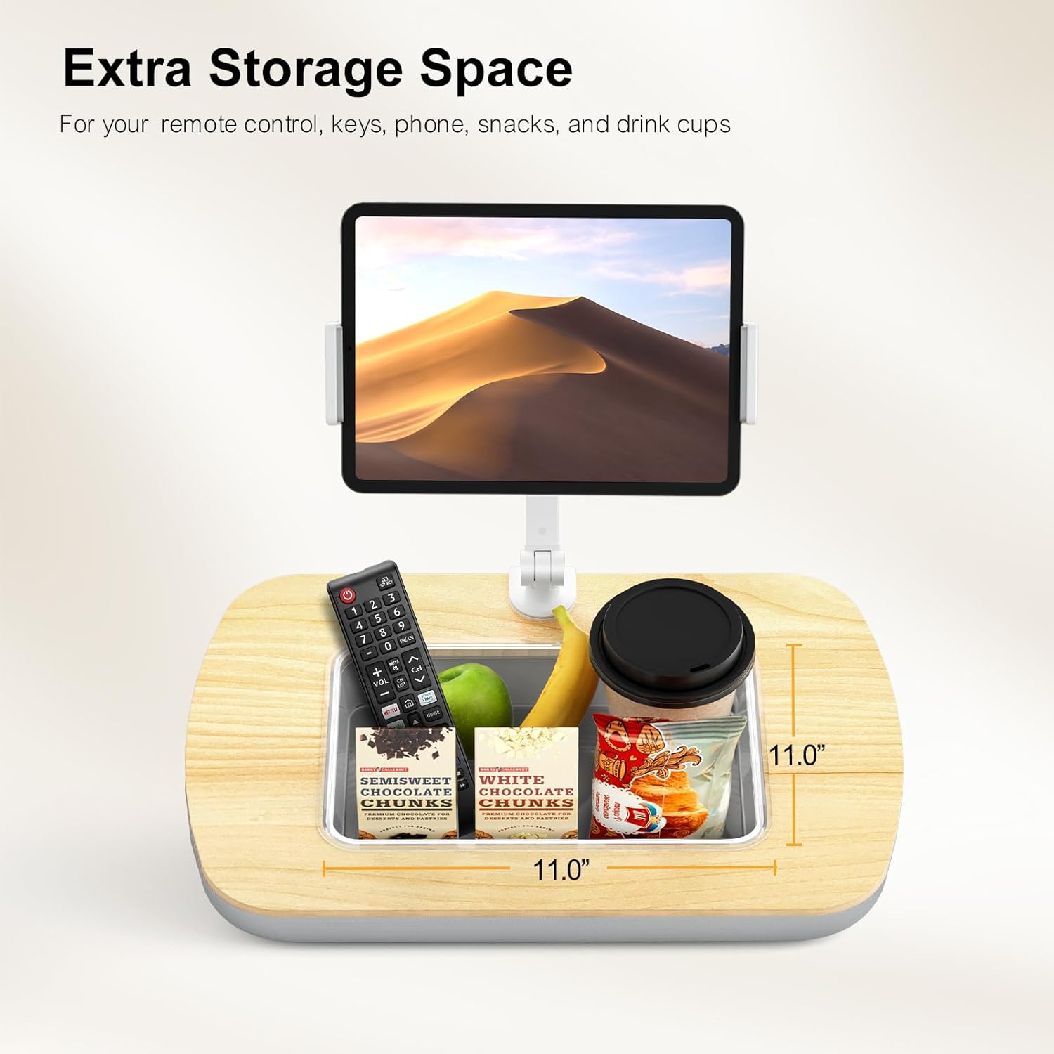 - Tray Design: The tray features a built-in storage box for storing remote controls, Bluetooth headsets, snacks, and phones. The wood finish surface is easy to clean, and the bean bag cover can be removed and washed separately.