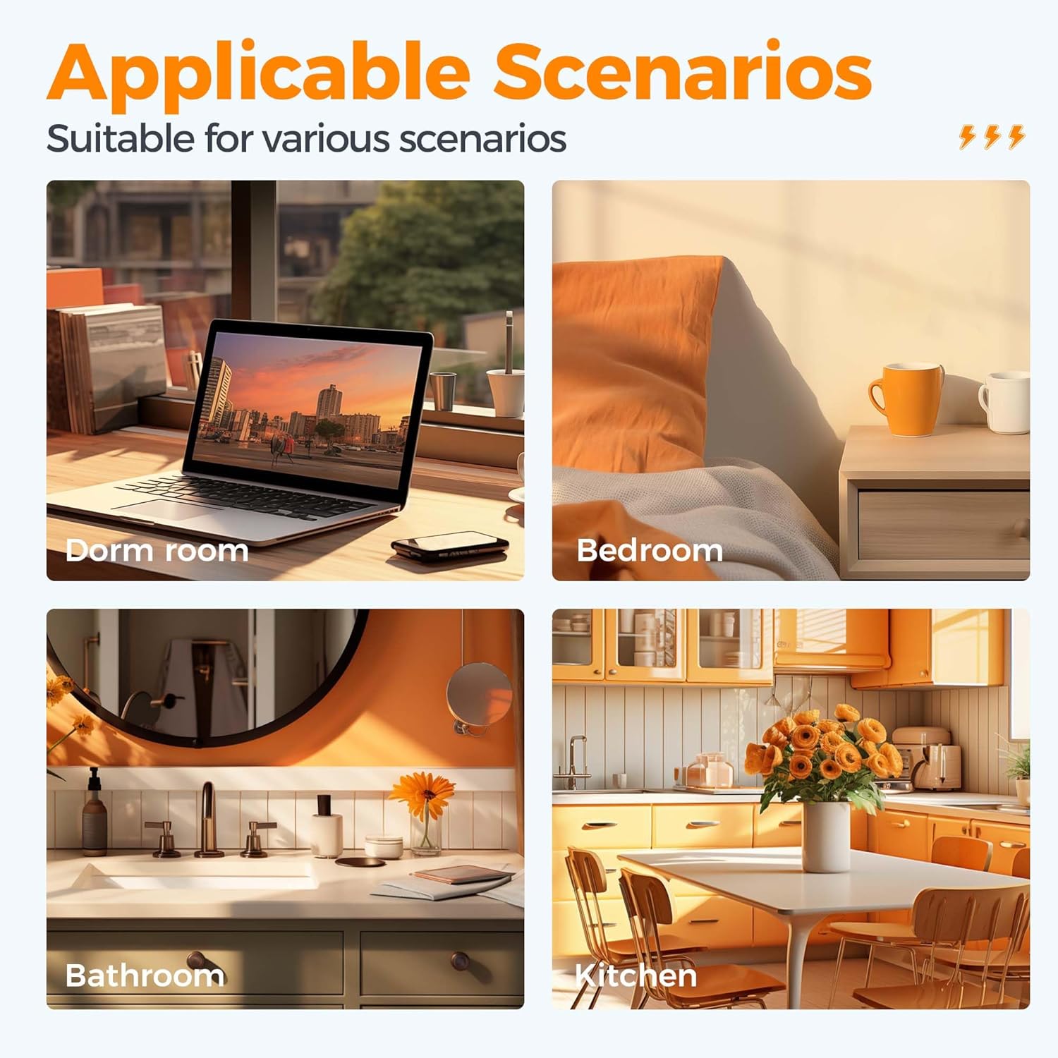 - Suitable for Any Occasions: Wall plug extender can easily fit in tight spots and hide behind sofa, bed, nightstand or other furniture, multi outlet wall plug makes it easier to use various equipment in any place with limited sockets, especially in bathroom, bedroom, living room, kitchen, and college dorm room