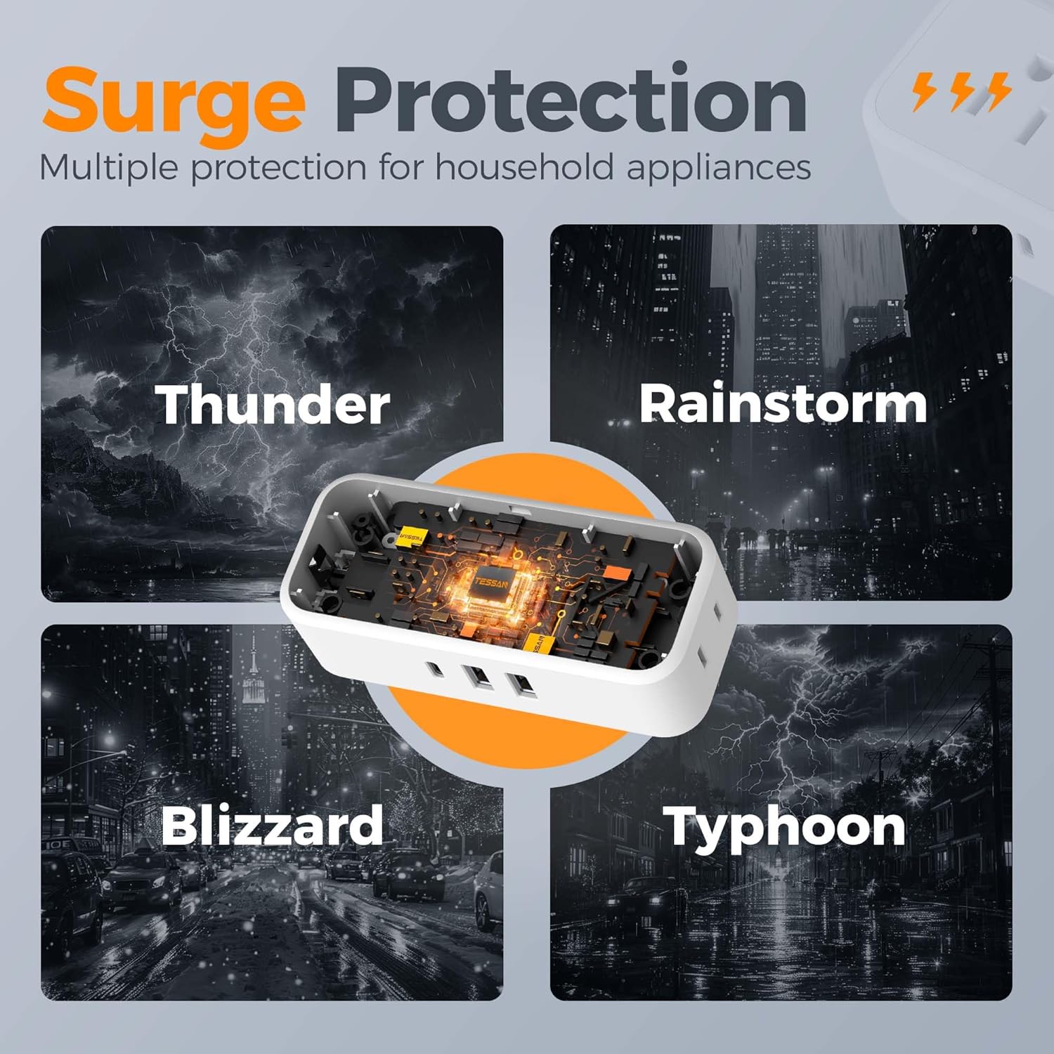 - Surge Protector Outlet: The power of wall outlet extender range 1875W, equipped with overload protection, short-circuit protection, over-current protection and etc, protect your expensive computers, hairdryers, shavers, and other devices from surges and spikes disturbances