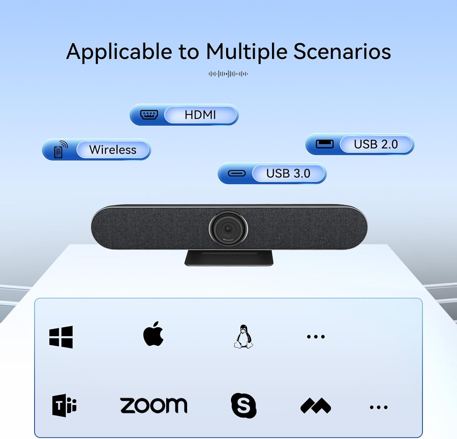 - The video conference camera is applicable to WIN; MAC; LINUX systems; Zoom; Microsoft Teams; and Tecent conference software; allowing you to connect with your teammates no matter what kind of systems or software they use