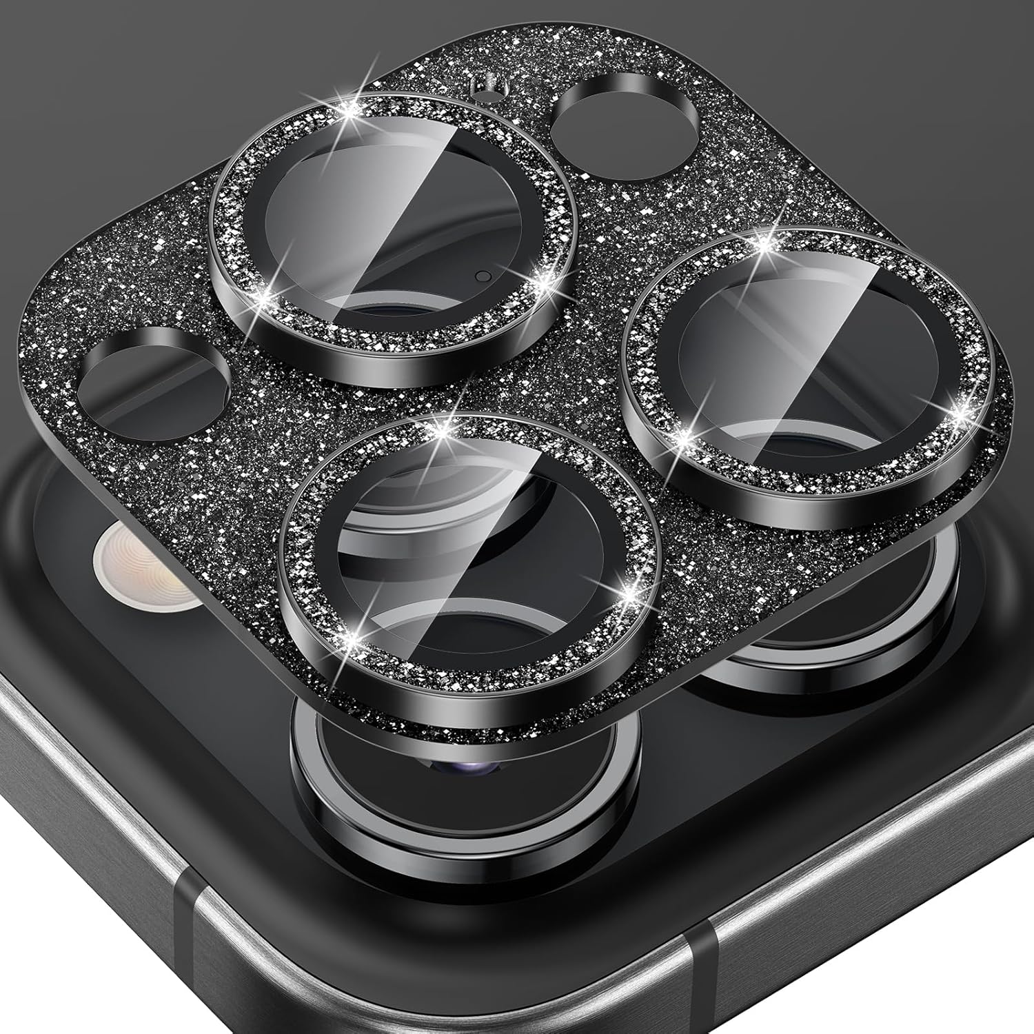- GLITTER TEXTURE- Upgraded tempered glass camera screen protector cover built-in 3 single metal ring protector, which bling glitter reflects fascinatingly. It protects lens also makes it personalized decorations. Many colors are available for you to choose