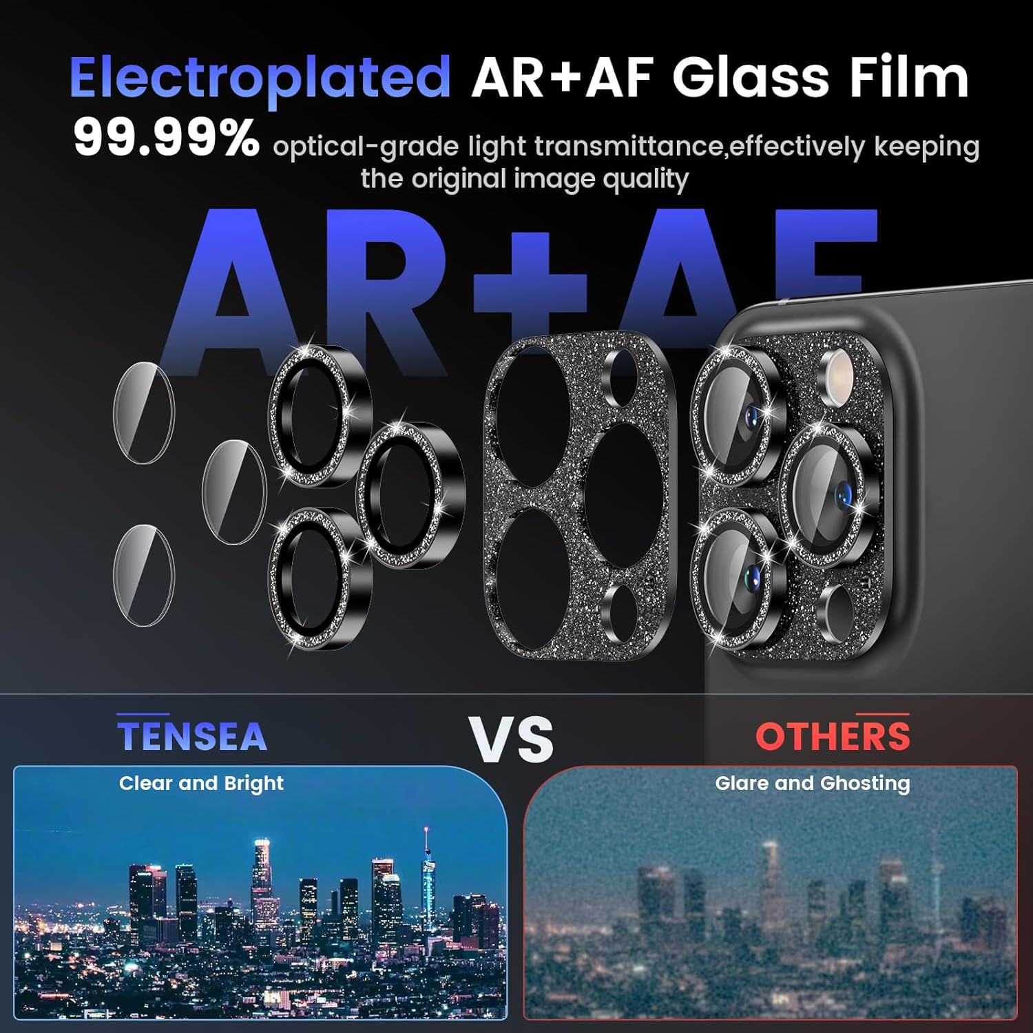 - COMPATIBILITY- Tensea rear camera protector made by 9H tempered glass and aluminum alloy is designed for iPhone 16 Pro 6.3inch / iPhone 16 Pro Max 6.9inch with THREE camera lens. The protector de camara full covers your phone lens. No bubbles, Case friendly, leave no residue after removed. NOTE: Not fit for iPhone 16/iPhone 16 Plus with two camera lens