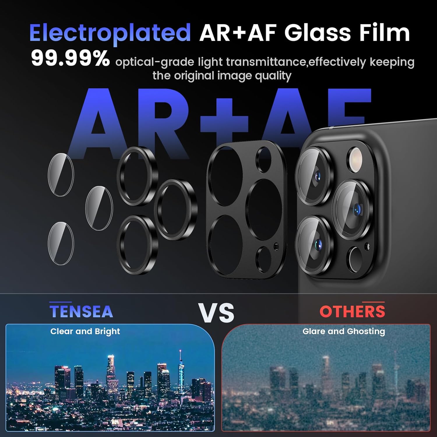 - COMPATIBILITY- Tensea rear camera protector made by 9H tempered glass and aluminum alloy is designed for iPhone 16 Pro 6.3inch / iPhone 16 Pro Max 6.9inch with THREE camera lens. The protector de camara full covers your phone lens. No bubbles, Case friendly, leave no residue after removed. NOTE: Not fit for iPhone 16/iPhone 16 Plus with two camera lens