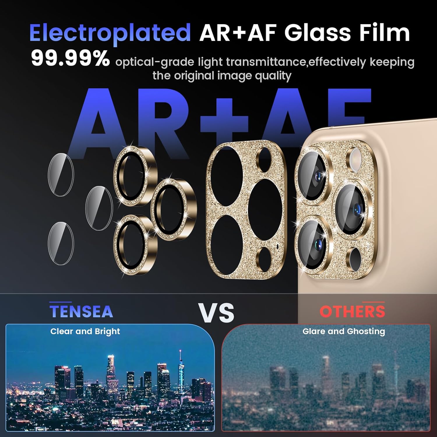 - COMPATIBILITY- Tensea rear camera protector made by 9H tempered glass and aluminum alloy is designed for iPhone 16 Pro 6.3inch / iPhone 16 Pro Max 6.9inch with THREE camera lens. The protector de camara full covers your phone lens. No bubbles, Case friendly, leave no residue after removed. NOTE: Not fit for iPhone 16/iPhone 16 Plus with two camera lens