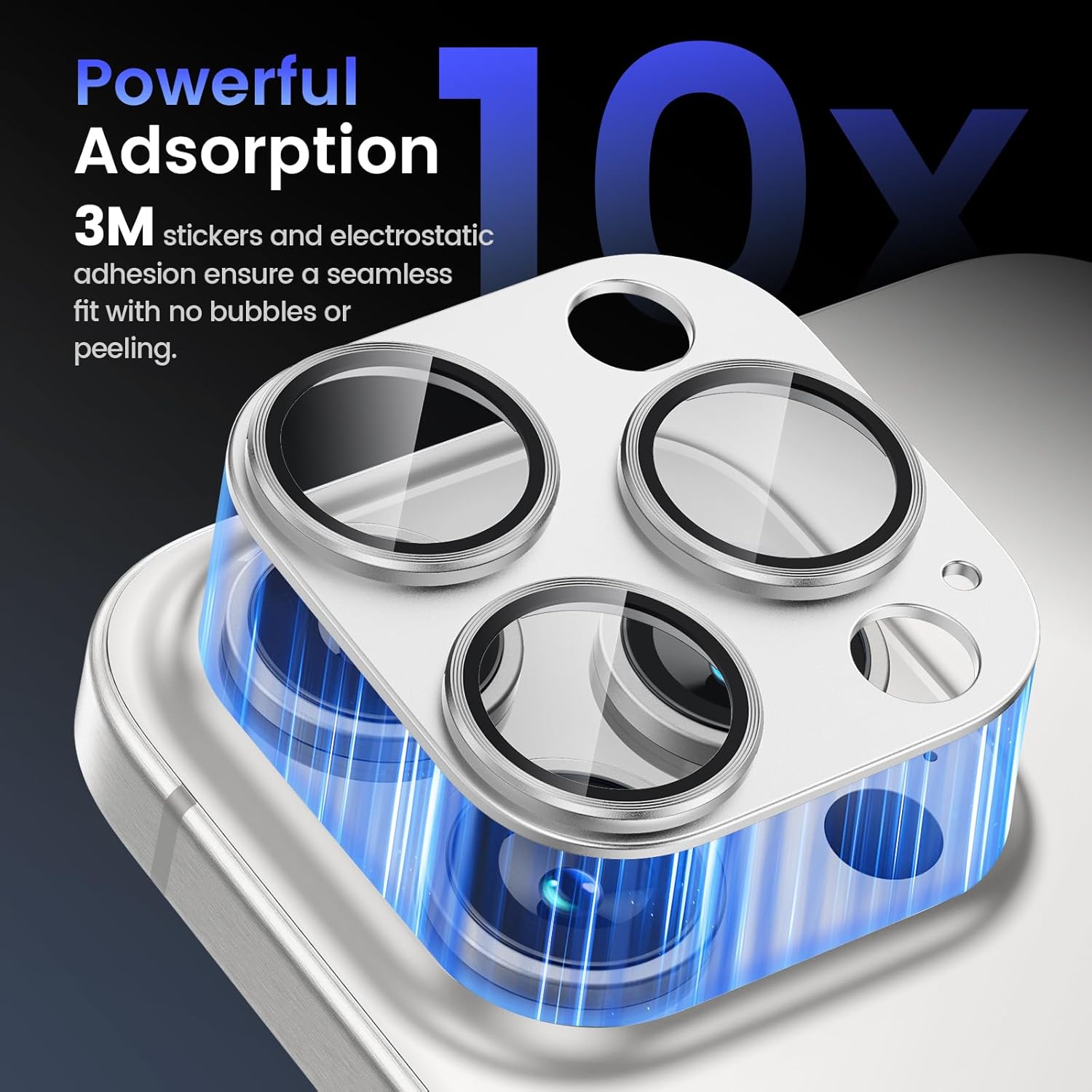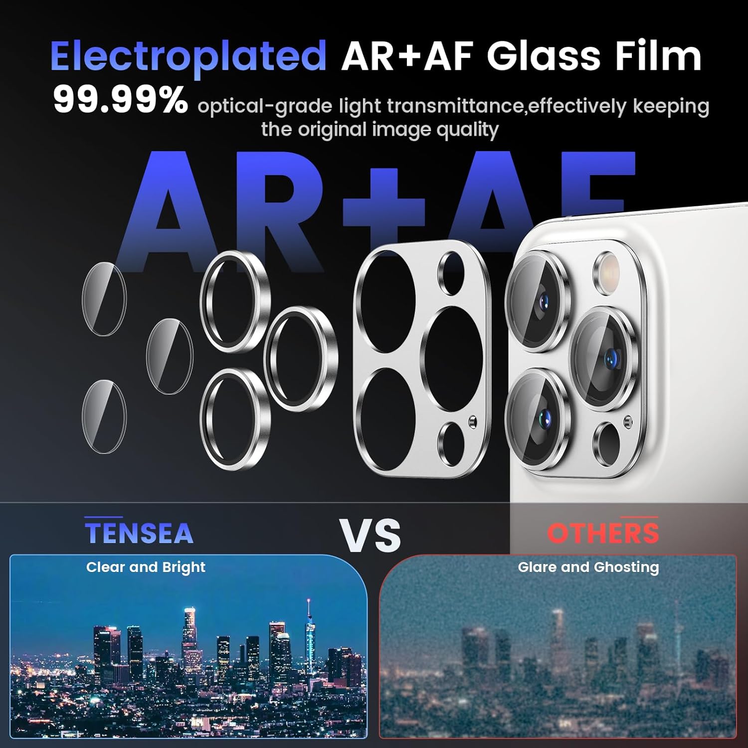 - COMPATIBILITY- Tensea rear camera protector made by 9H tempered glass and aluminum alloy is designed for iPhone 16 Pro 6.3inch / iPhone 16 Pro Max 6.9inch with THREE camera lens. The protector de camara full covers your phone lens. No bubbles, Case friendly, leave no residue after removed. NOTE: Not fit for iPhone 16/iPhone 16 Plus with two camera lens