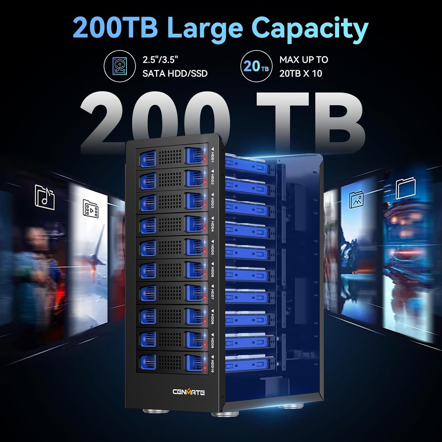 - 【Reliable External Storage System for Individuals】The 3.5 hard drive enclosure supports 2.5/3.5inches HDD and SSD , max capacity up to 200TB( 20TB for each hard driveit's a ideal external hard drive enclosure for personal or enterprise using.