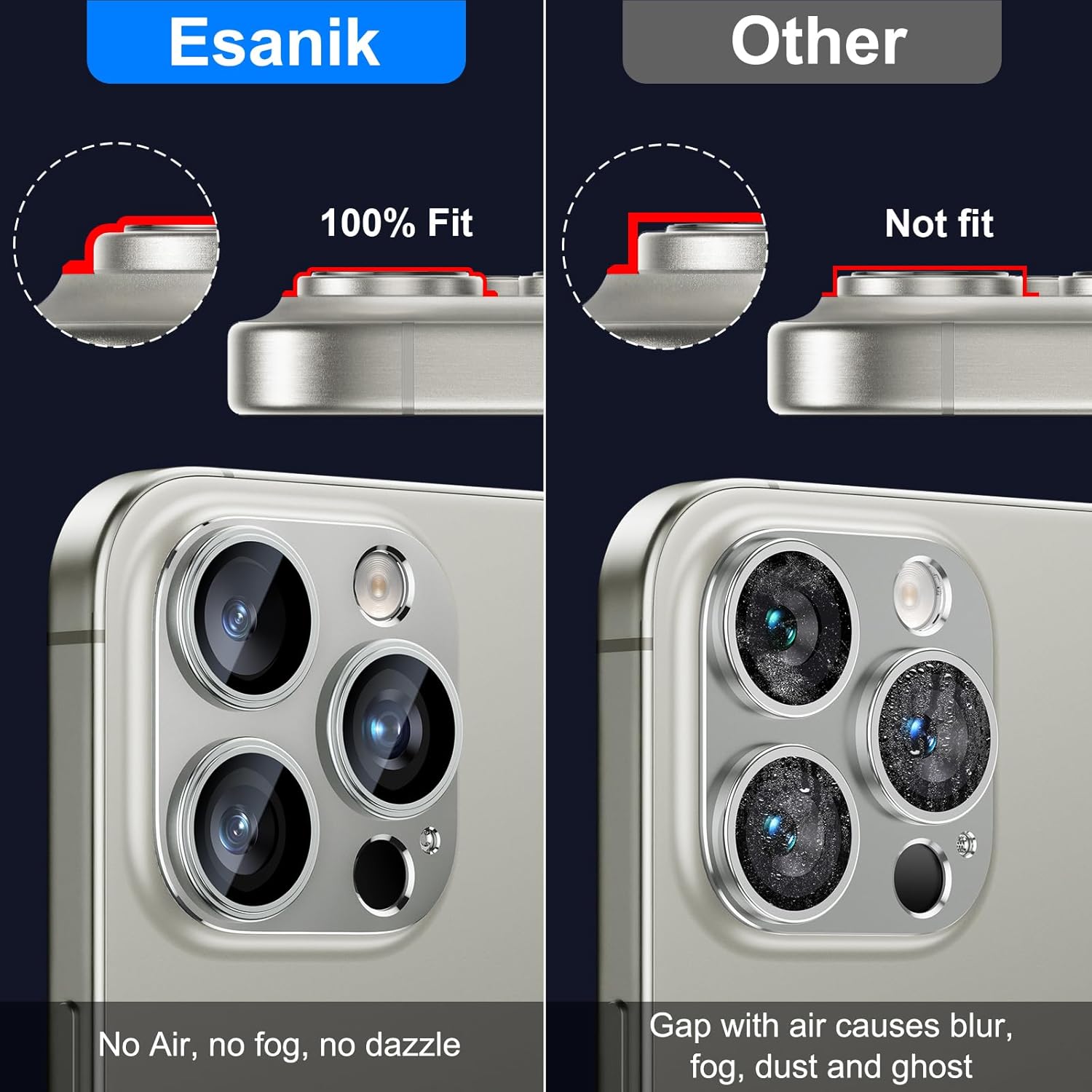 - 【CNC Engraving & Integrated Molding】 Esanik 2024 Upgrade Version iPhone 16 pro max / iPhone 16 Pro Cam Cover is precisely carved from whole piece of high-quality aluminum alloy, firm and long lasting. Bid farewell to the split and falling apart issues resulting from the conventional split assembly process.