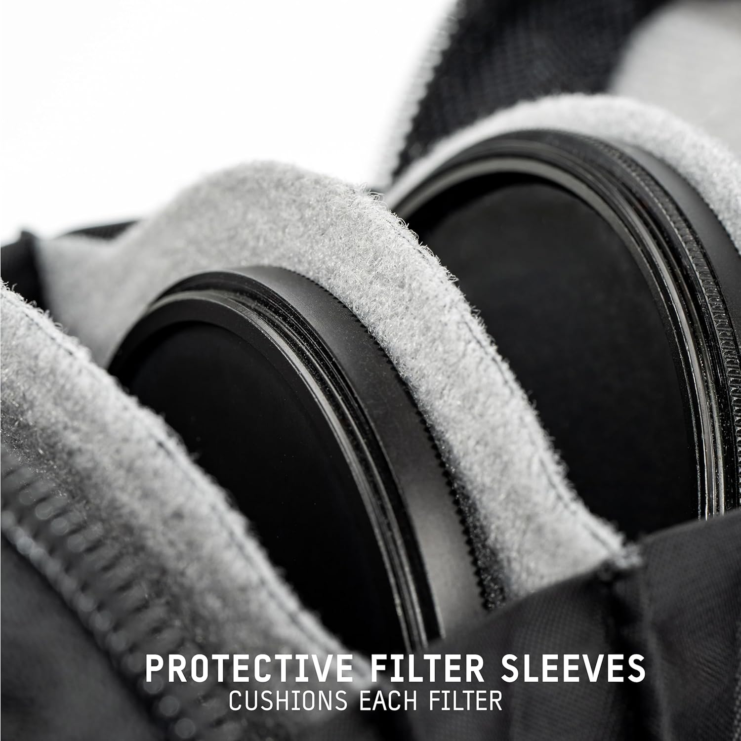 - Perfect Fit: The case's padded soft-touch internal lens dividers provide a secure and snug fit for each filter, reducing movement and potential damage. Designed to integrate seamlessly into your camera backpack or camera case, it offers peace of mind for traveling photographers.